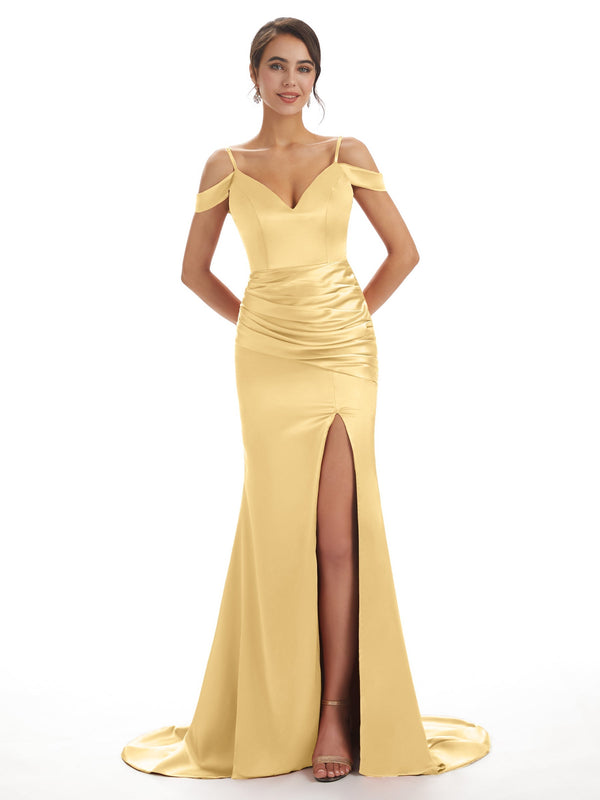 Fall Off The Shoulder Satin Mermaid Bridesmaid Dresses