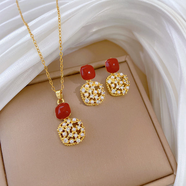 Flash Diamond Tassel Luxury Dress Accessories Dinner Clavicle Necklace Earring CN270