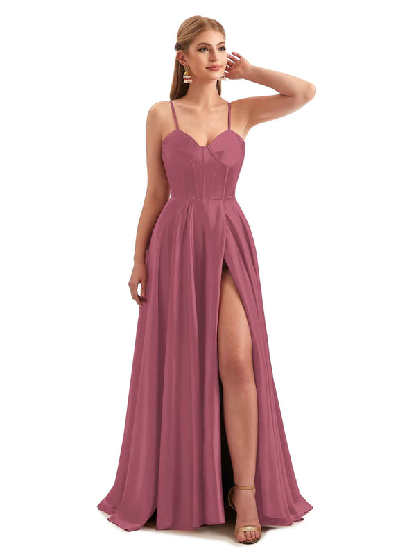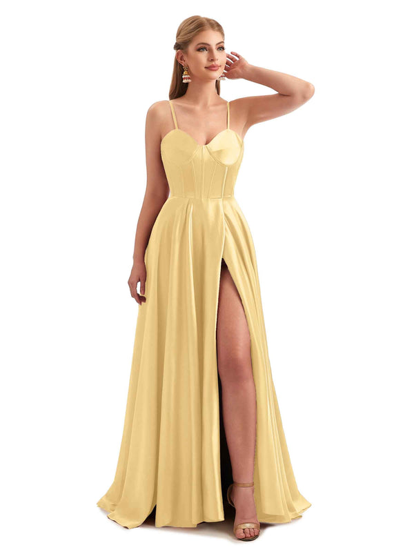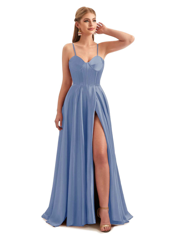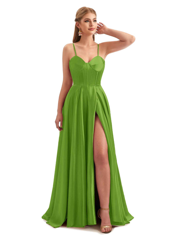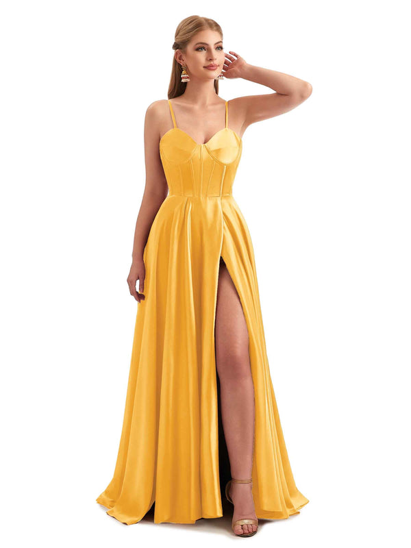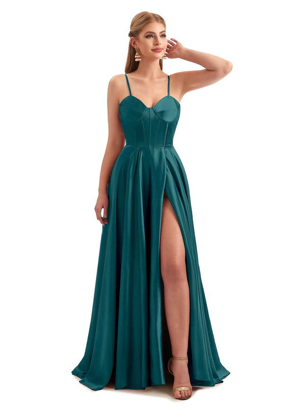 Spring A-Line Formal Satin Long Bridesmaid Dresses