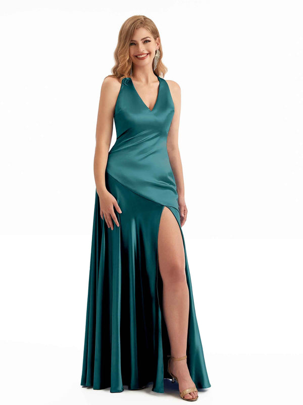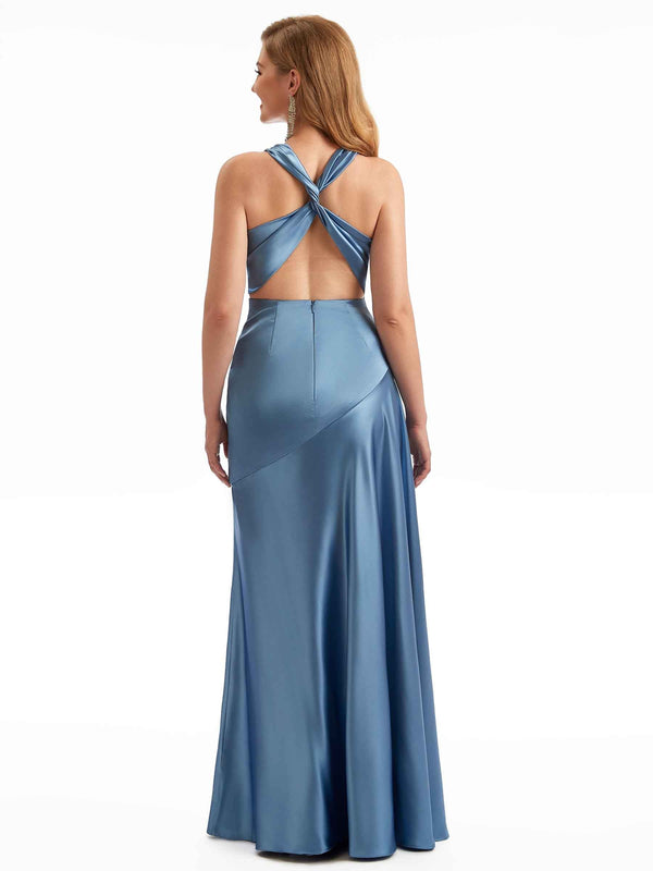 V-Neck Satin Back Criss-Cross Boho Bridesmaid Dress