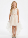 V-Neck Sleeveless Floral Lace Tulle Flower Girl Dress Cute High-Low Gown with Back Bow Detail
