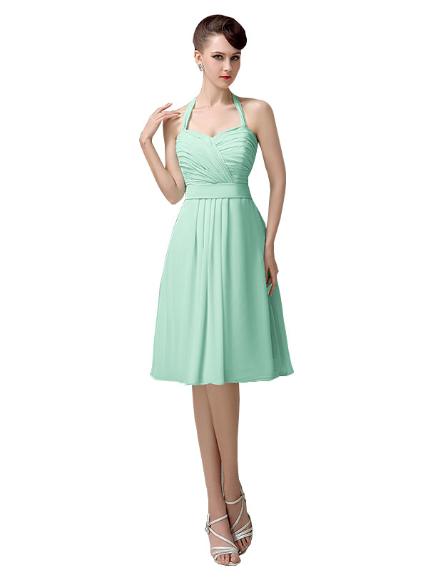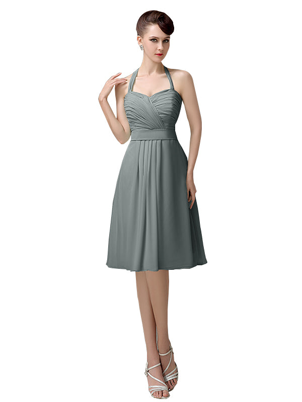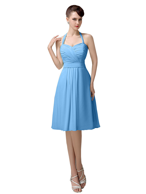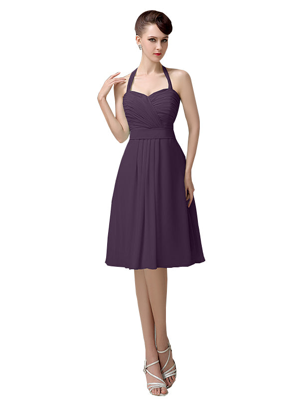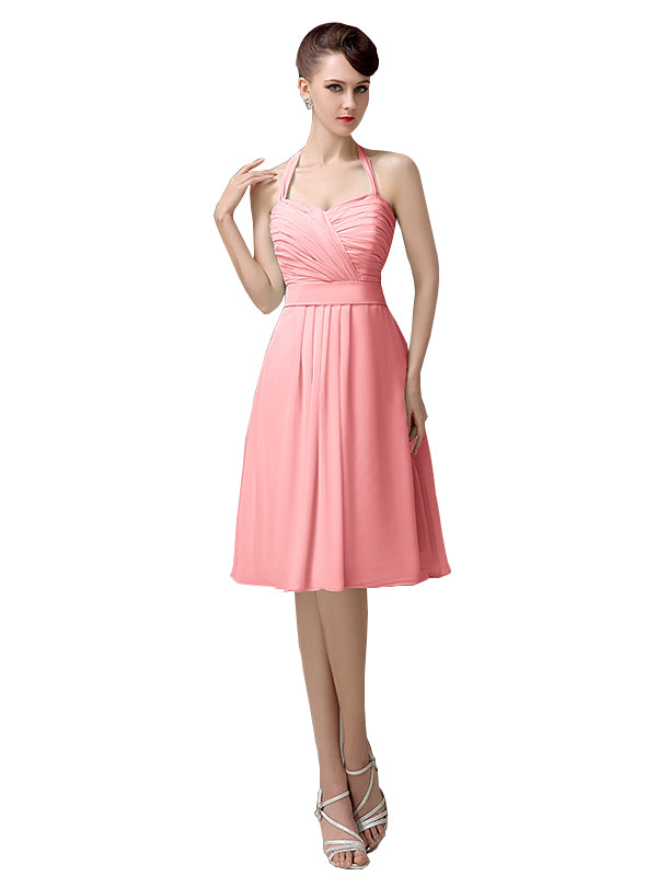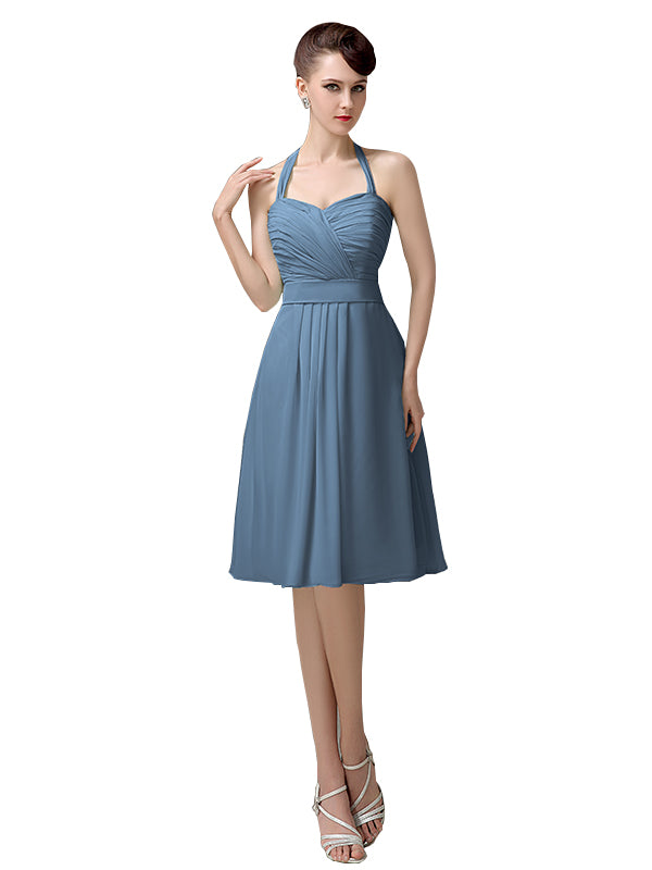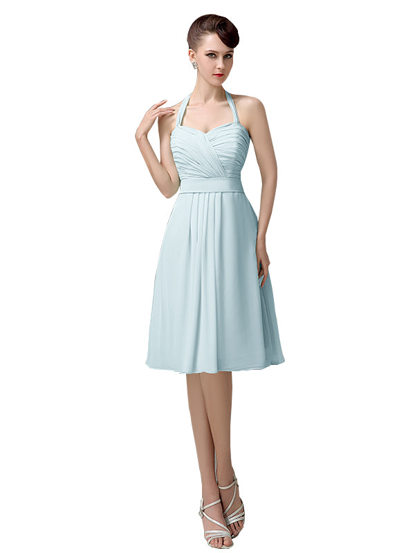 Halter Straps Chiffon Simple Backless Short Bridesmaid Dresses