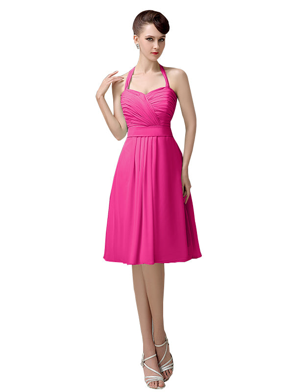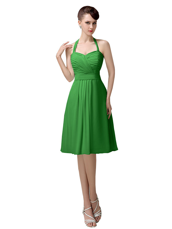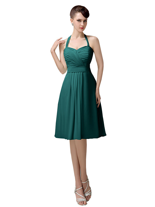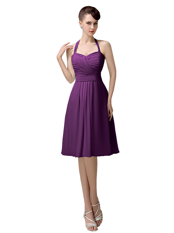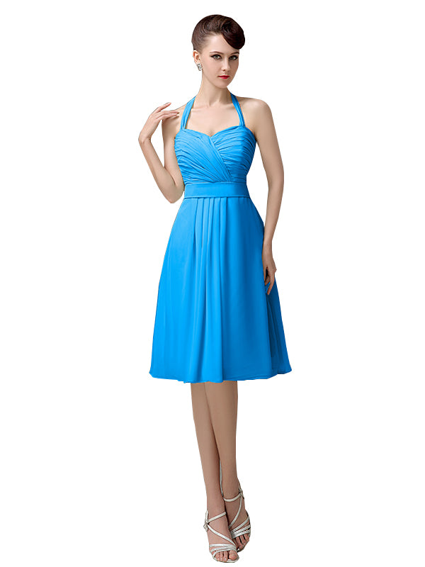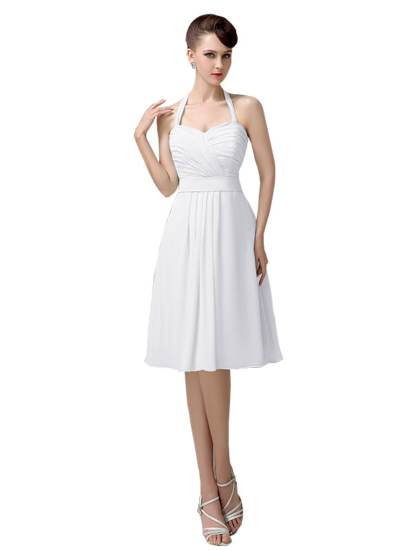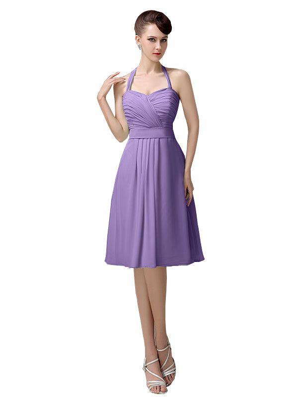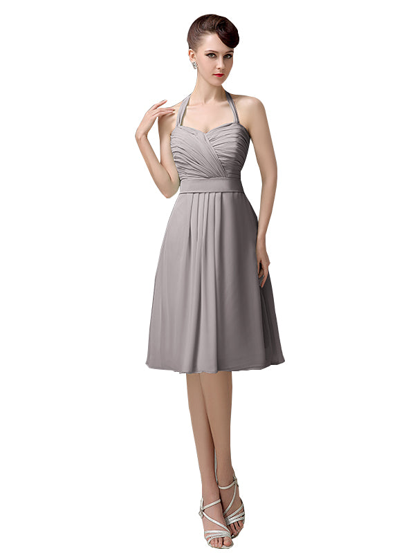 Halter Straps Chiffon Simple Backless Short Bridesmaid Dresses