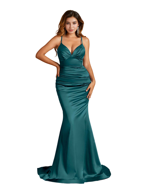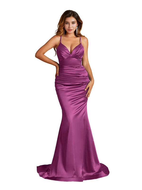 Since it's mermaid style, so only error is less than 1'' between your real measurements (bust, waist, hip: biggest part of hip, hollow to floor with shoes on) and standard size, then choose standard size otherwise it's better Custom size. Please note if your real measurements are smaller than dress, then pleats and ruches will become loose; if your real measurements are bigger than dress, then pleats and ruches will be spread to plain, so dress will not be the same as picture shown.