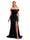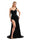 Scoop Ruffles Black Satin Side Slit Bridesmaid Dresses