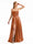 Cowl Neck Champagne Criss Cross Satin Bridesmaid Dresses