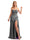 Black Satin Spaghetti Straps Side Split Bridesmaid Dresses