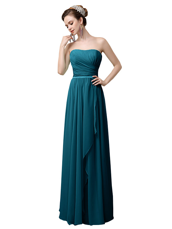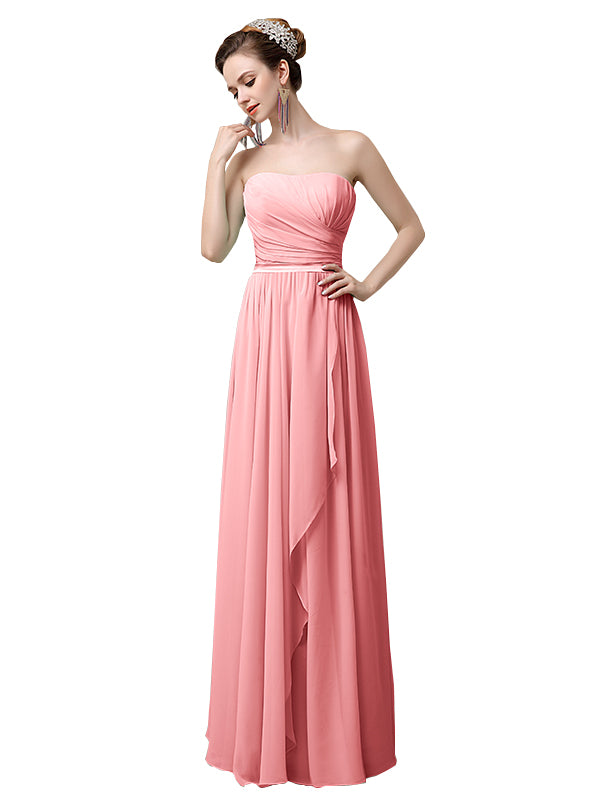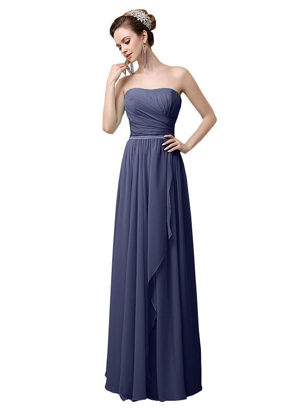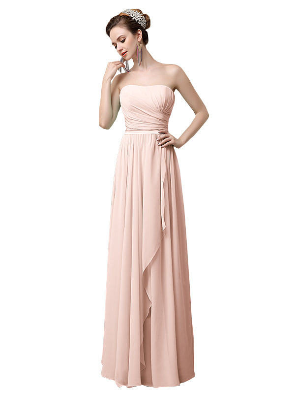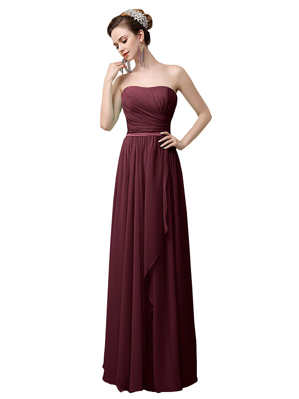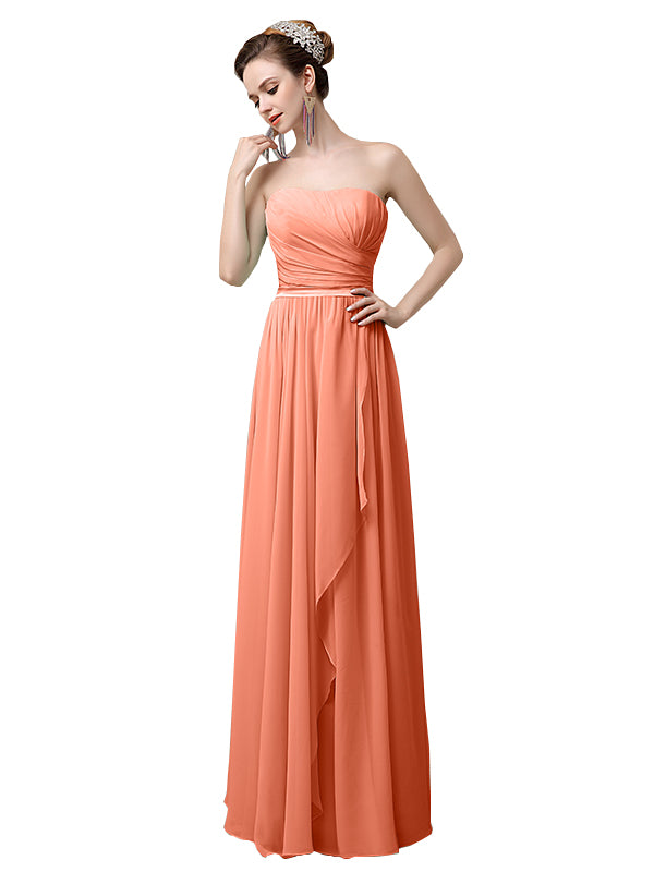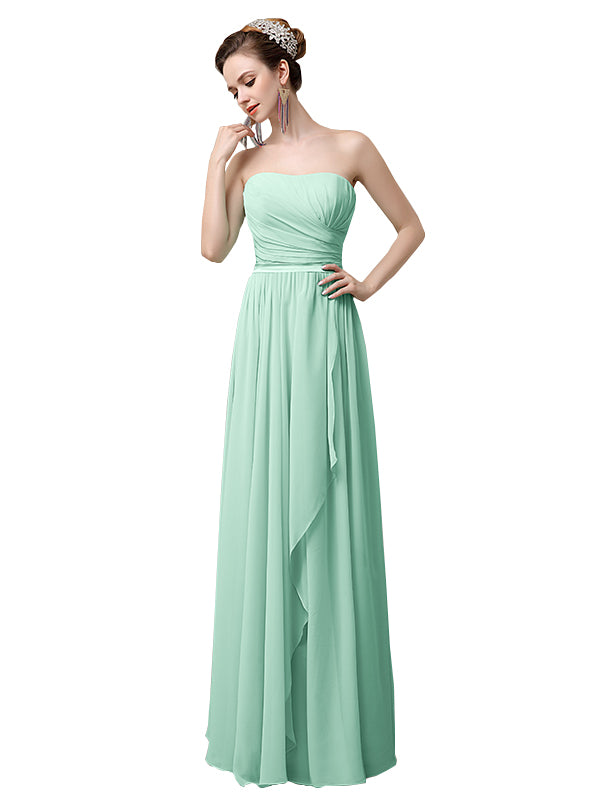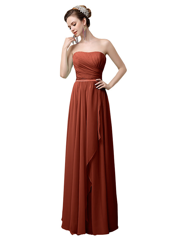 Simple A-line Chiffon Straight Floor-Length Long Bridesmaid Dresses