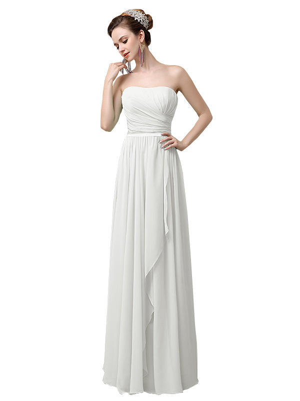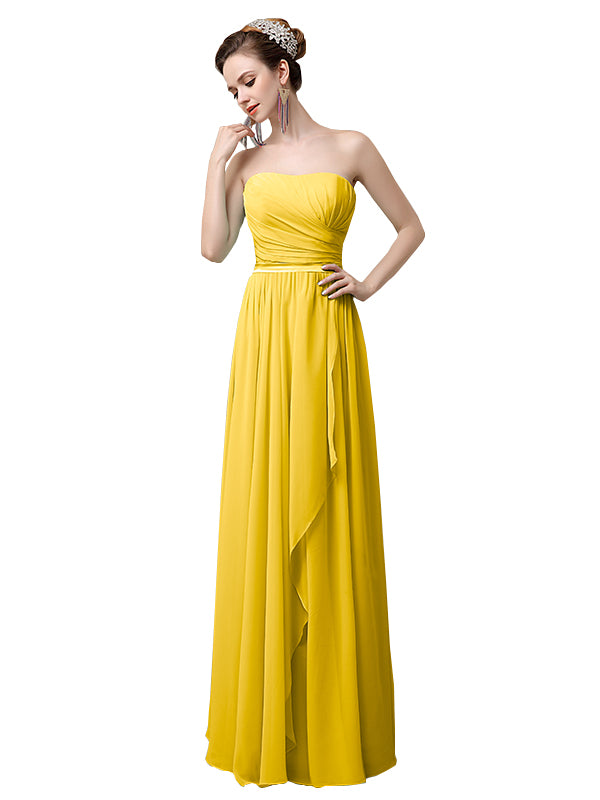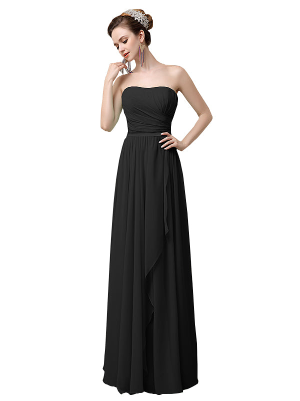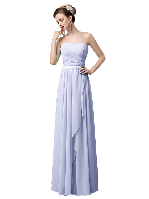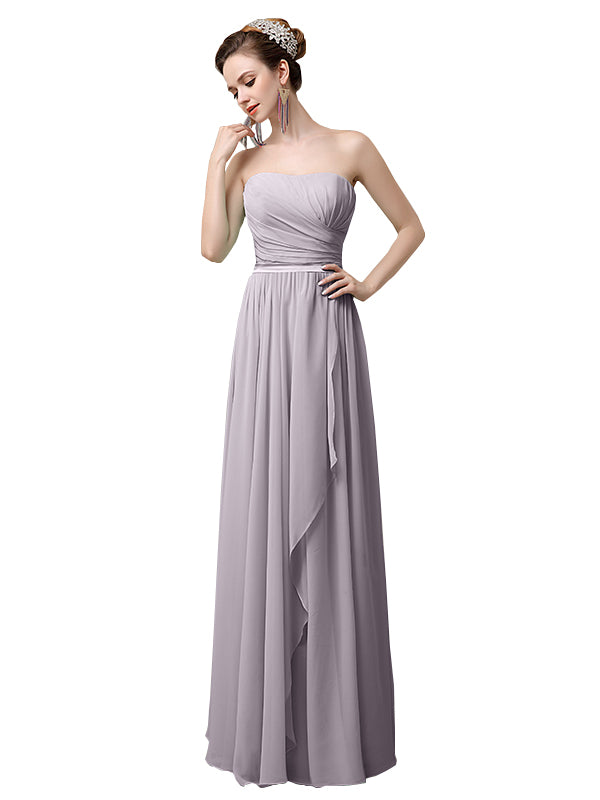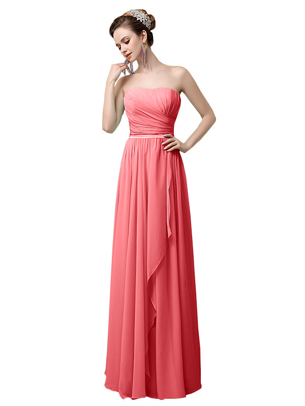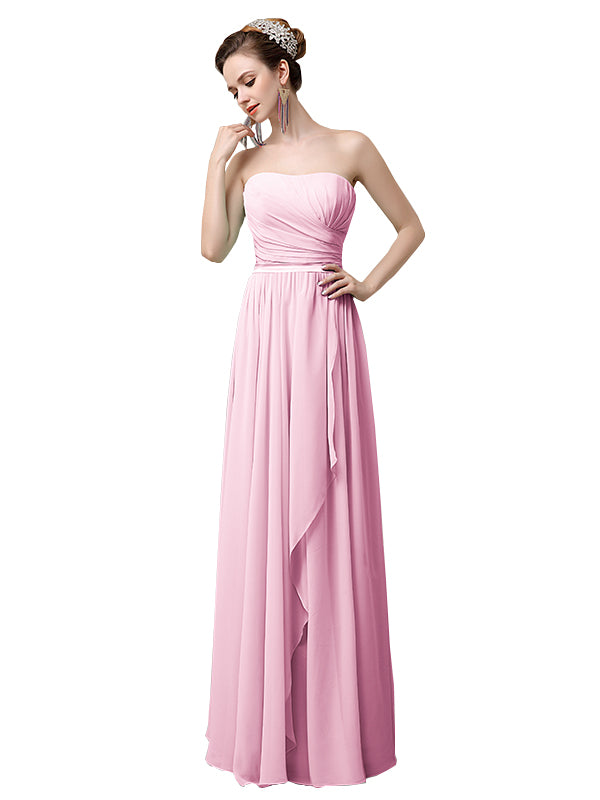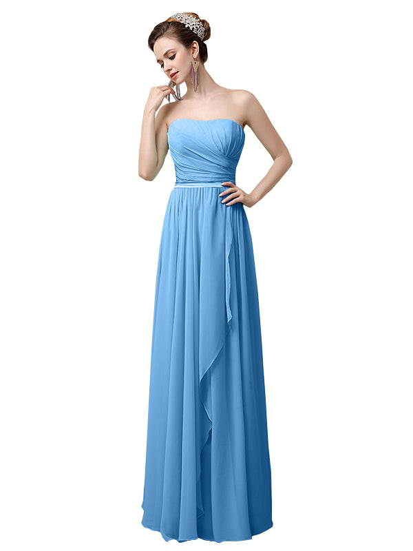 Simple A-line Chiffon Straight Floor-Length Long Bridesmaid Dresses