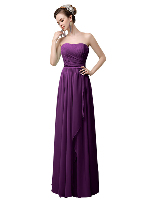 Simple A-line Chiffon Straight Floor-Length Long Bridesmaid Dresses $75.99