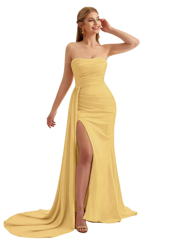 Sweetheart Sexy Side Slit Silky Satin Mermaid Chic Bridesmaid Dresses Online