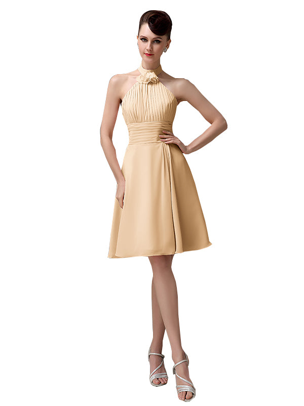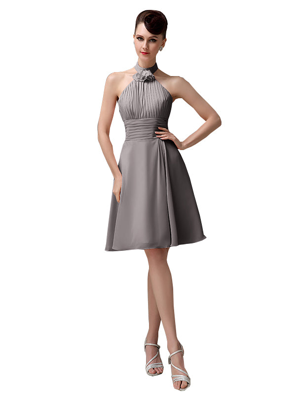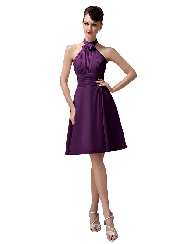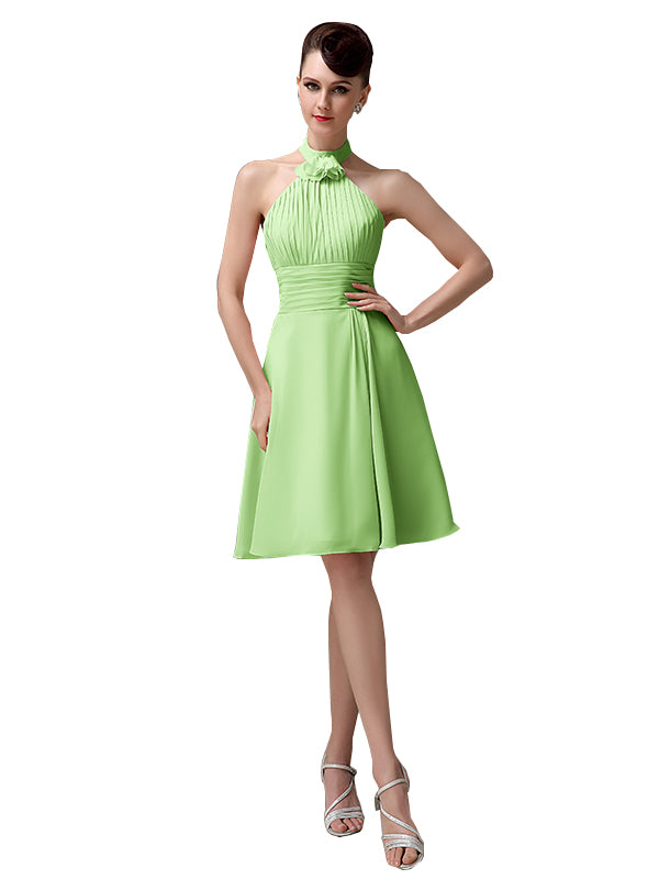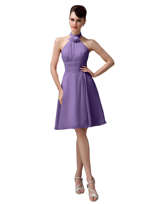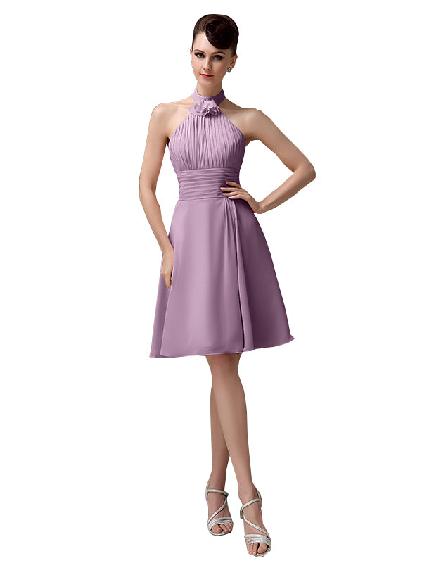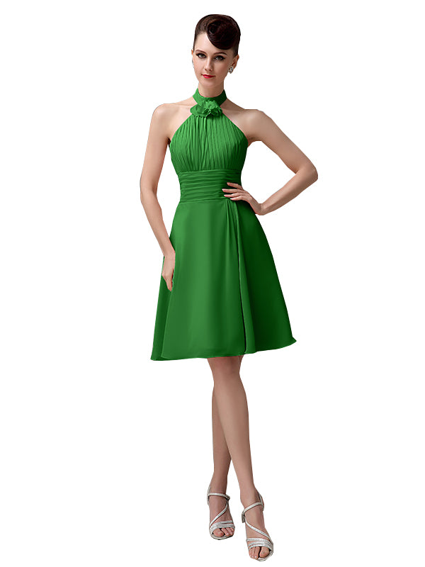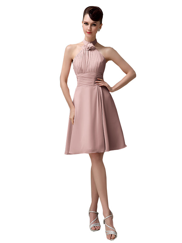 Halter Knee-length Chiffon A-line Short Bridesmaid Dresses