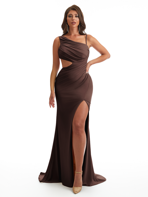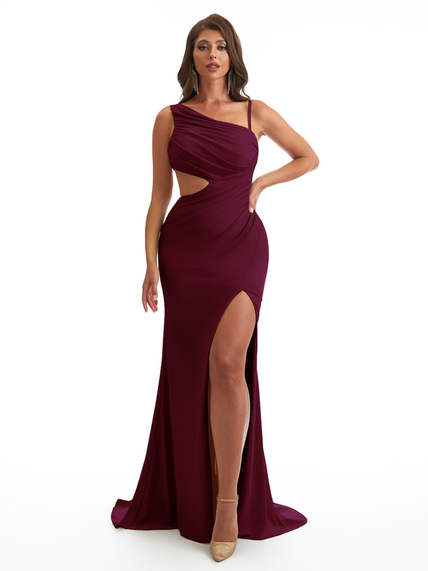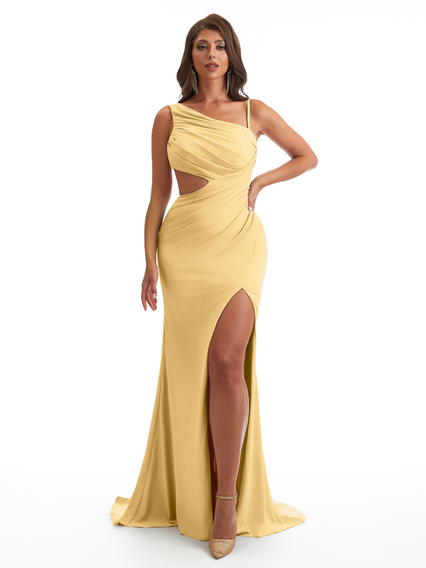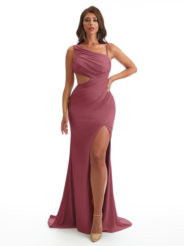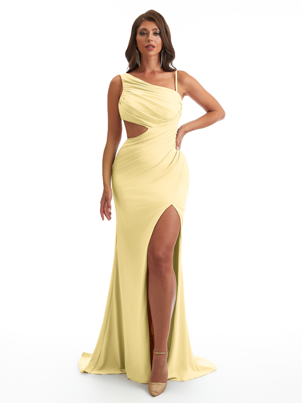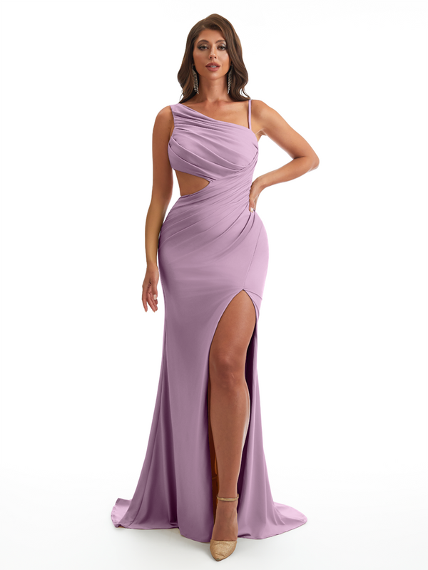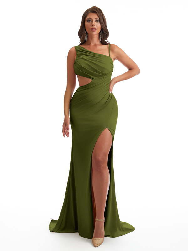 Sexy Asymmetrical Side Slit Mermaid Soft Satin Long Bridesmaid Dresses Online