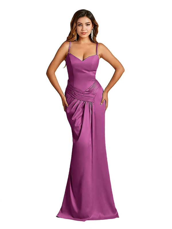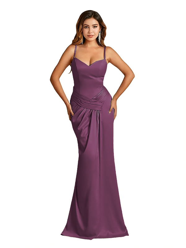 Elegant Spaghetti Straps V-Neck Mermaid Soft Satin Long Evening Gowns For Women $139.99