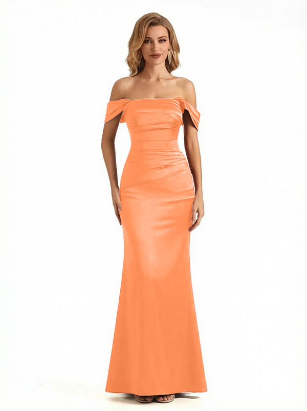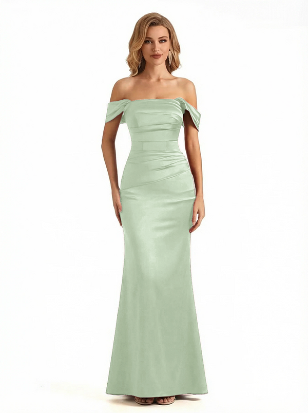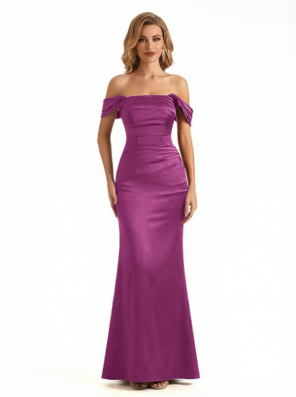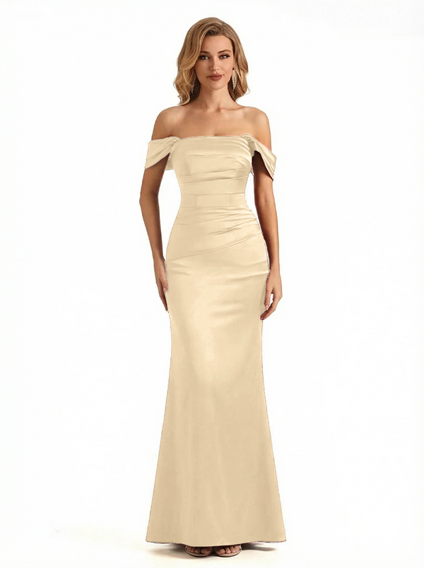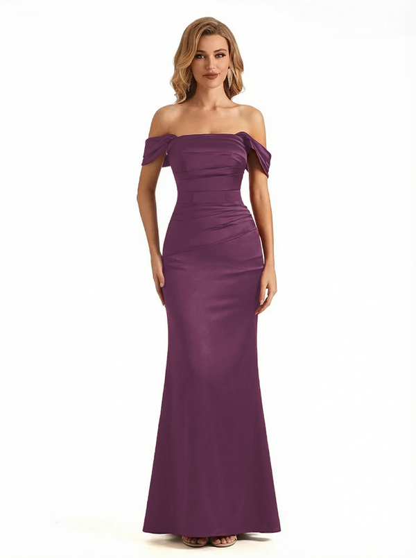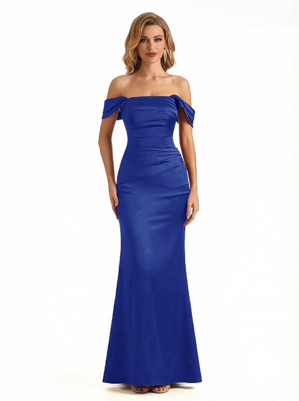 Womens' Sexy Off The Shoulder Mermaid Ruched Satin Long Formal Dresses
