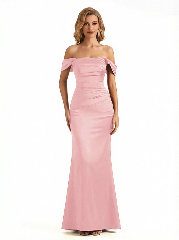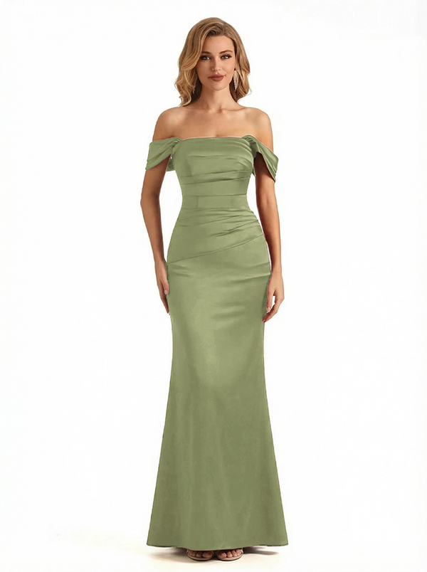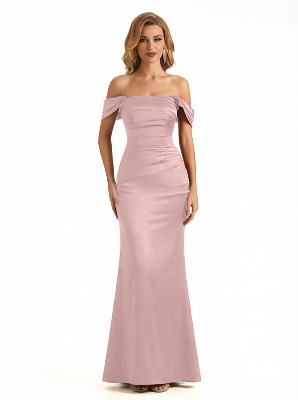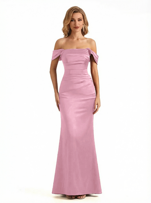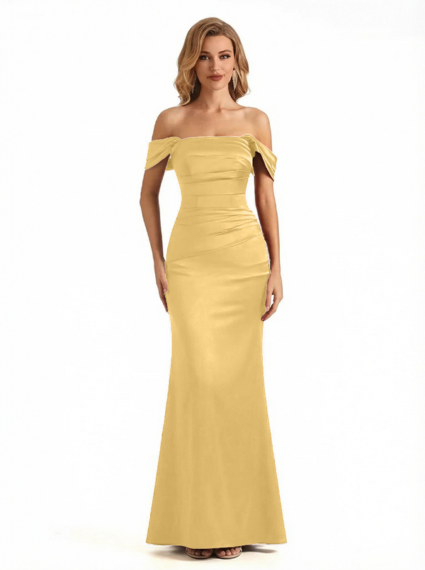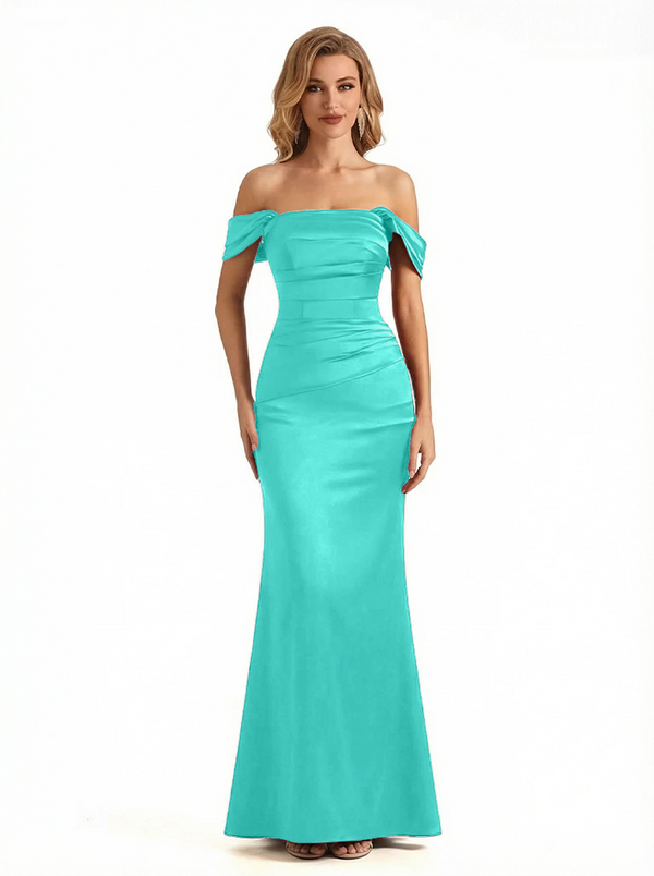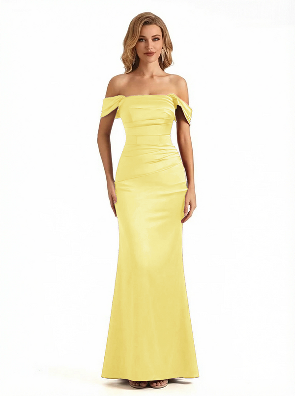 Womens' Sexy Off The Shoulder Mermaid Ruched Satin Long Formal Dresses