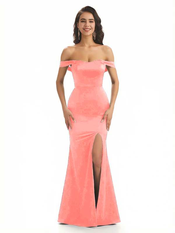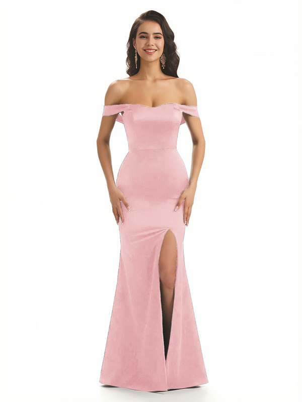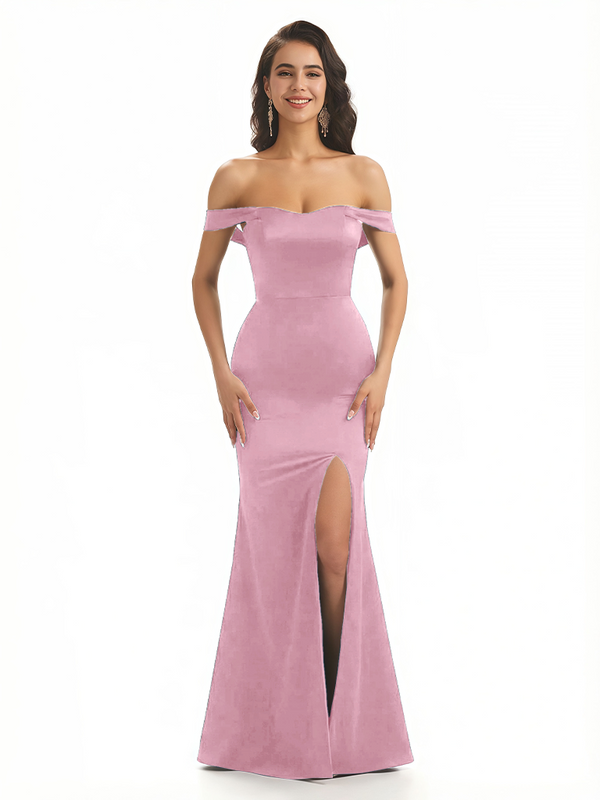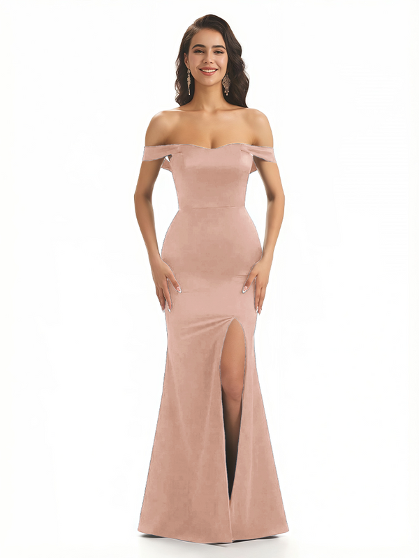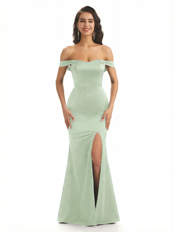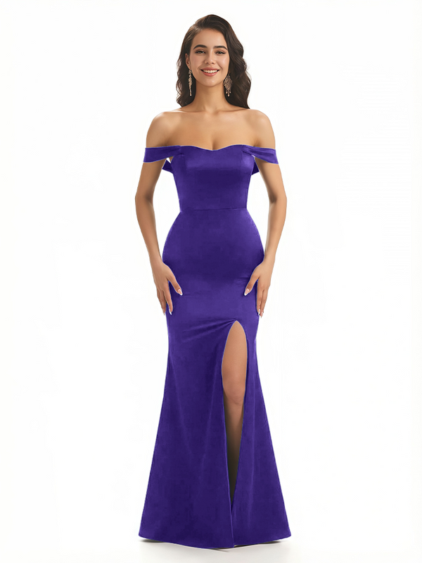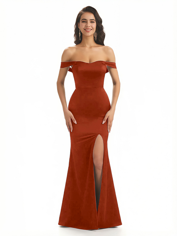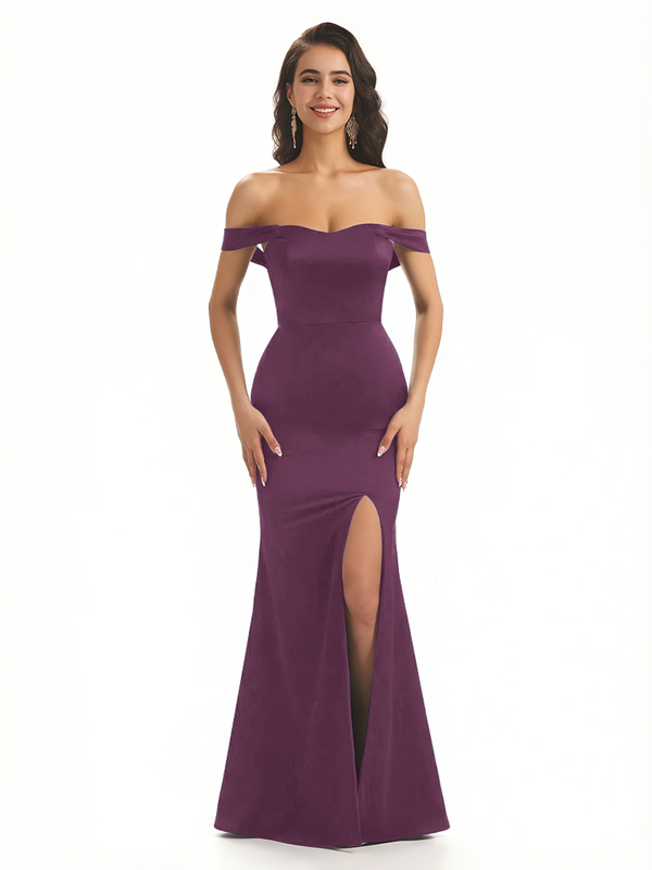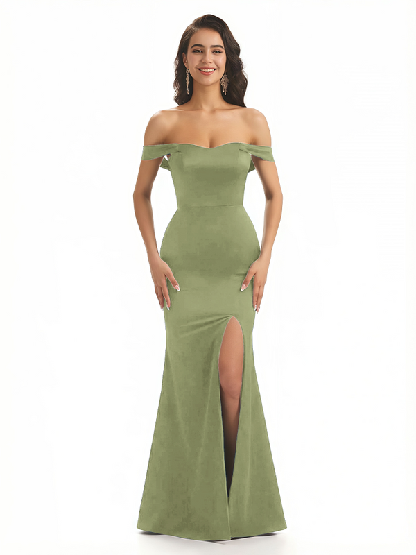 Sexy Off The Shoulder Mermaid Ruched Silky Satin Long Evening Dresses For Wedding
