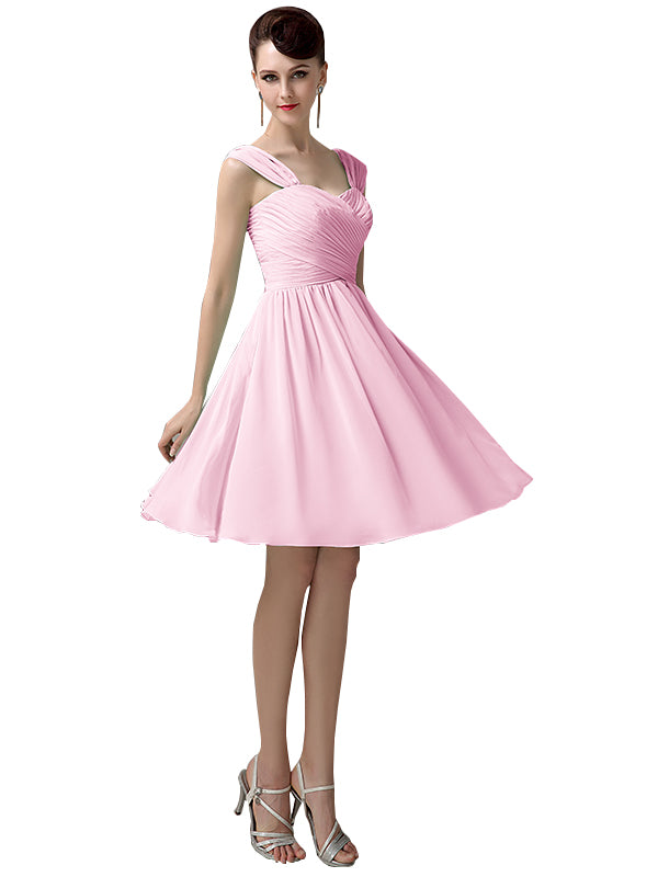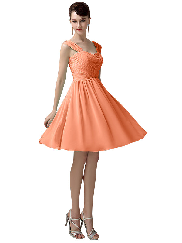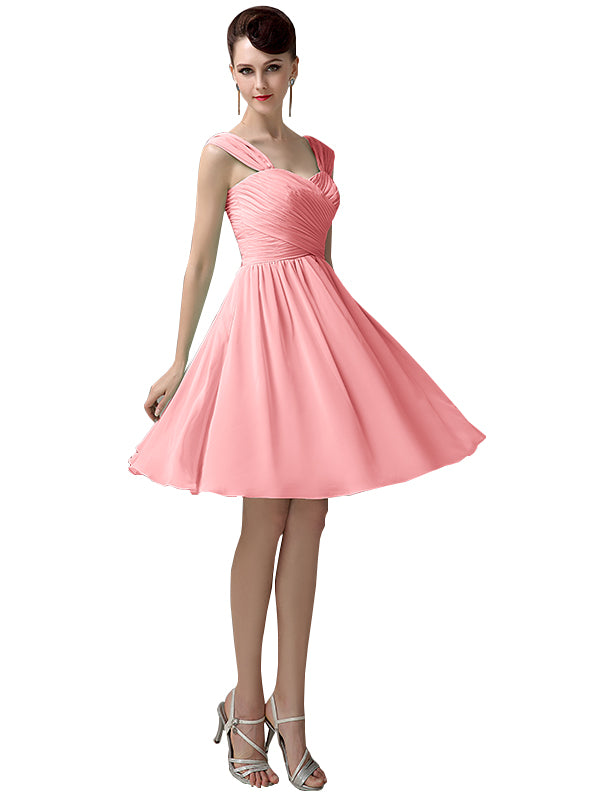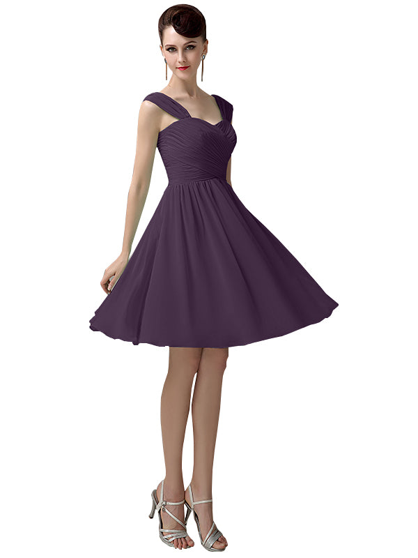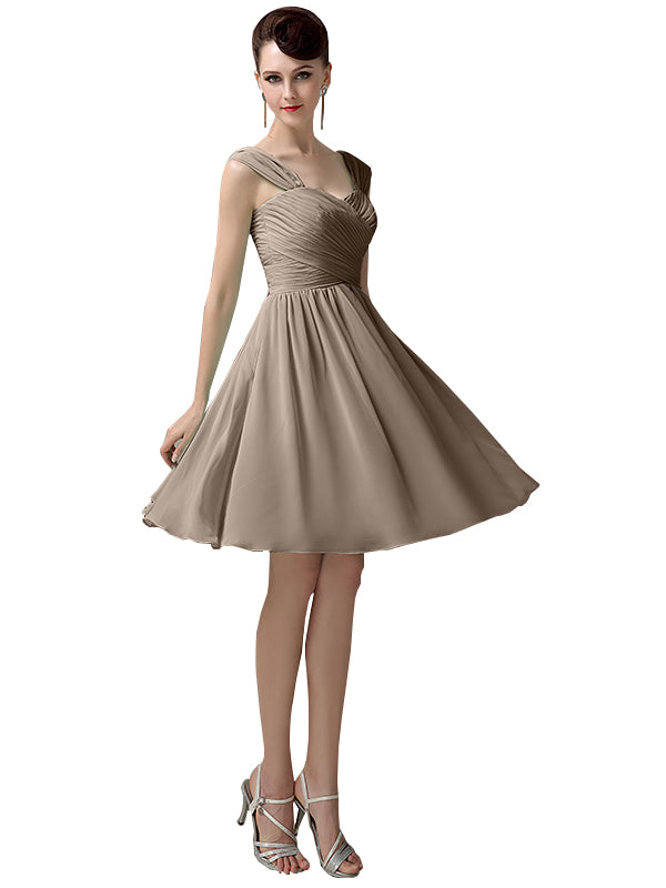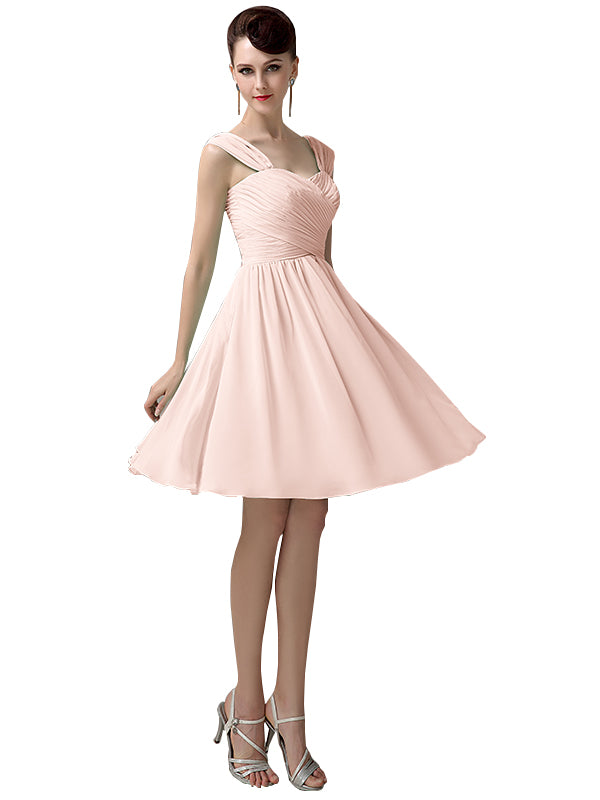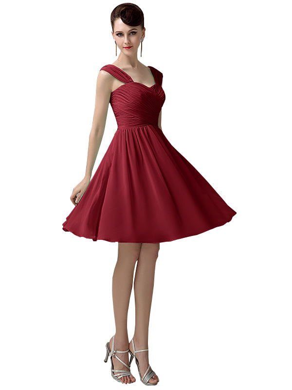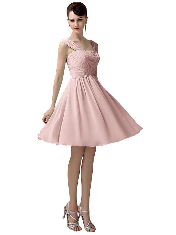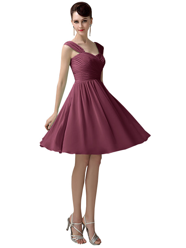 Simple A-line Knee-Length Chiffon Half-Back Short Bridesmaid Dresses