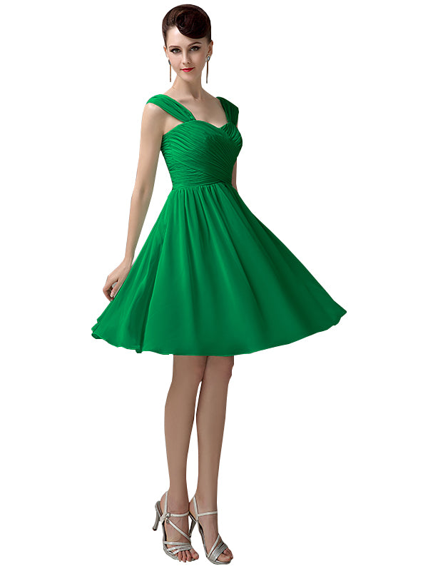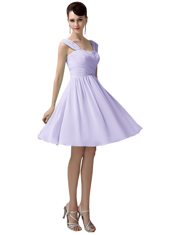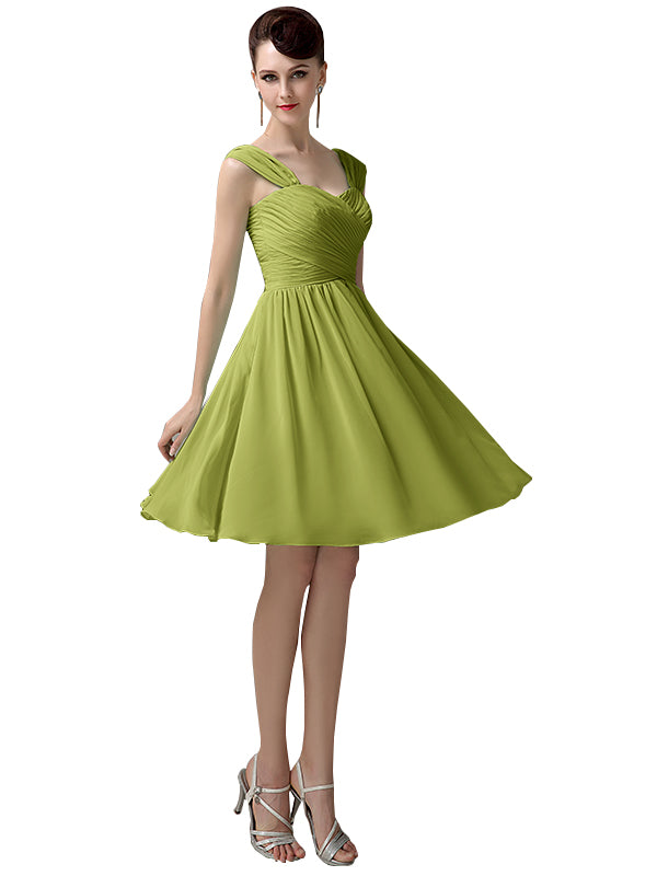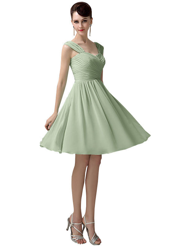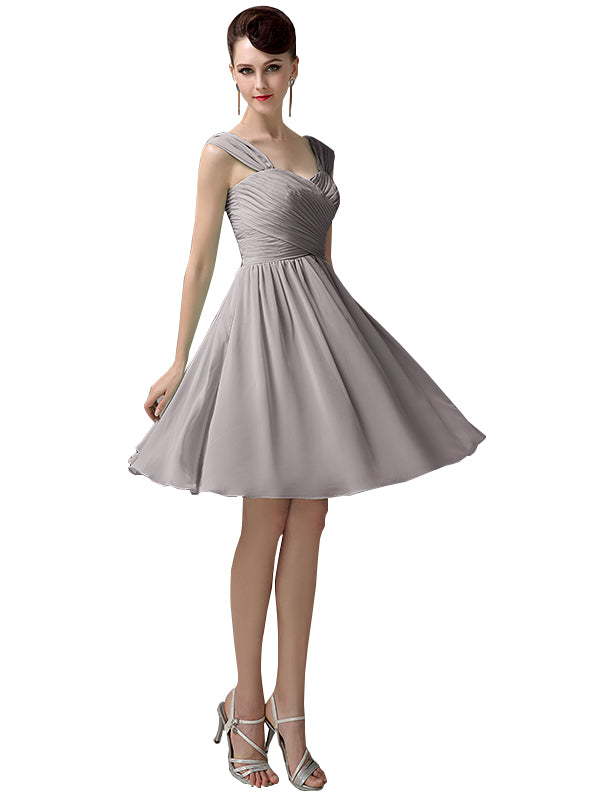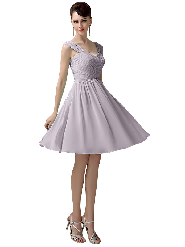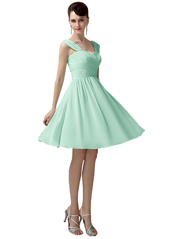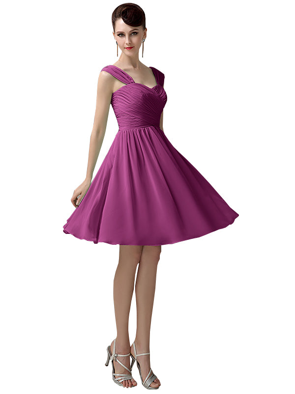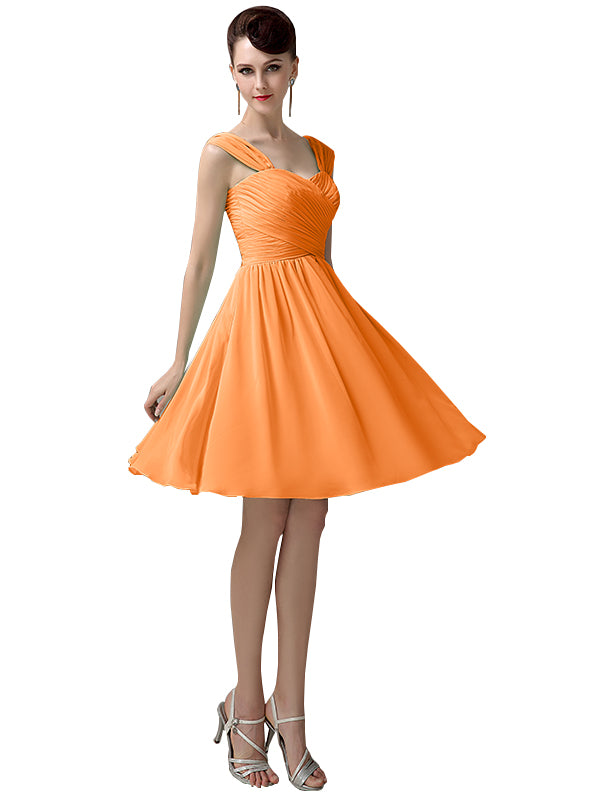 Simple A-line Knee-Length Chiffon Half-Back Short Bridesmaid Dresses