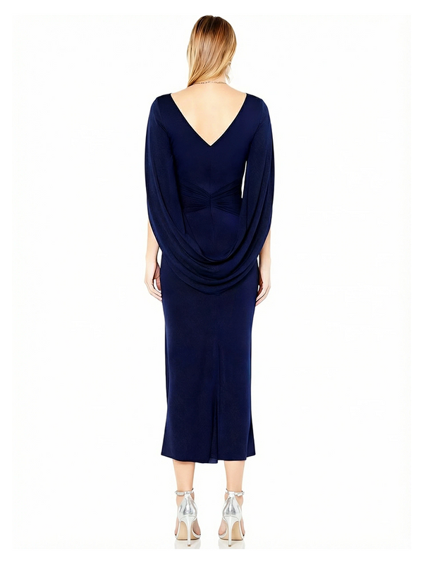 Elegant Glitter Jersey V-Neck Unique Ankle-Length Mother of The Bride Dresses