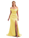 Champagne Long Off The Shoulder Satin Bridesmaid Dresses $139.99
