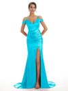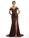 Champagne Off The Shoulder Satin Mermaid Bridesmaid Dresses