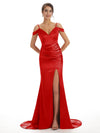 Champagne Off The Shoulder Satin Mermaid Bridesmaid Dresses $139.99