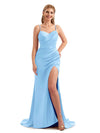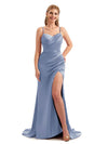 Sexy Champagne Satin Spaghetti Straps Bridesmaid Dresses