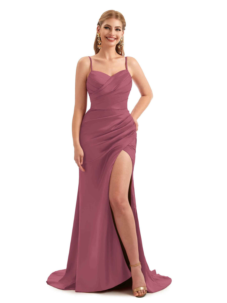 Sexy Champagne Satin Spaghetti Straps Bridesmaid Dresses $139.99