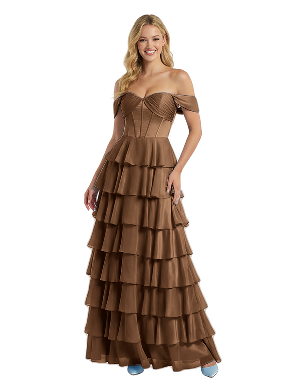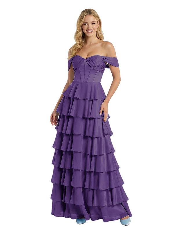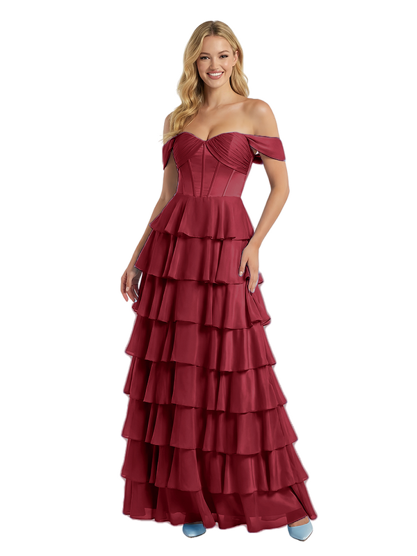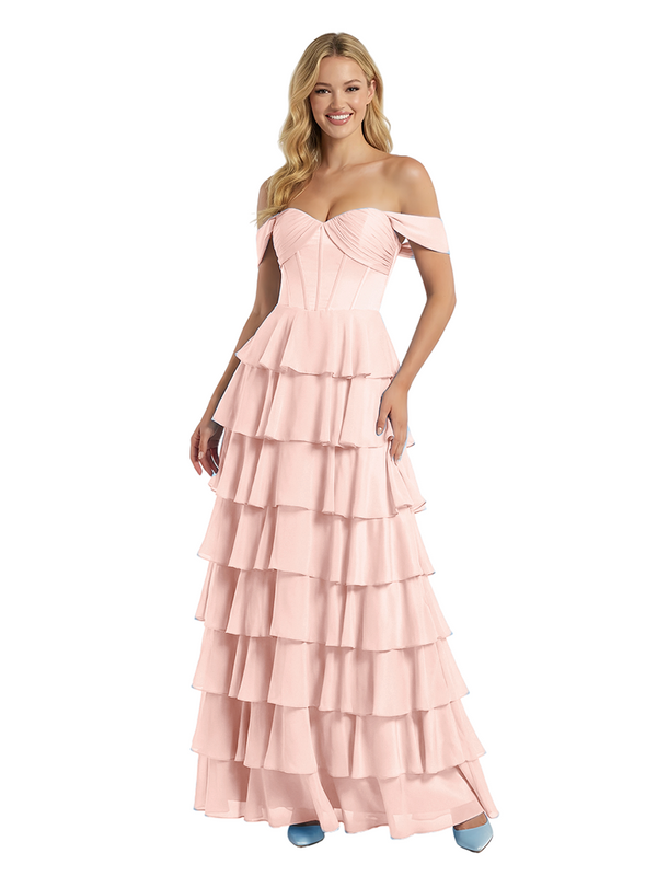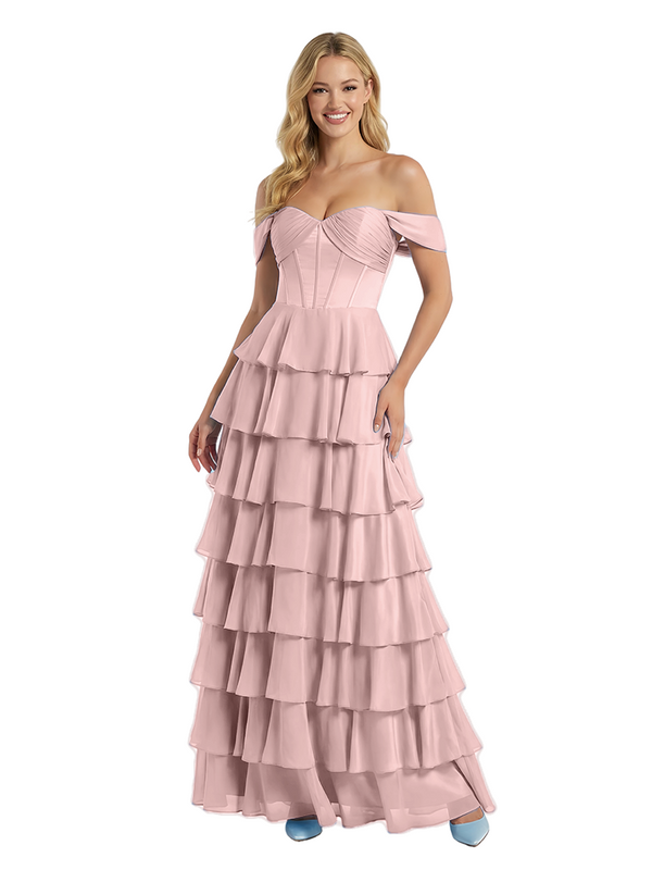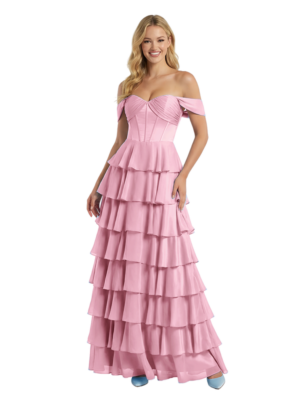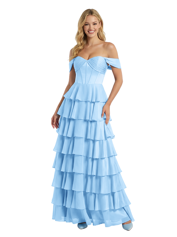 ChicSew Sweet Off Shoulder Ruffles Chiffon Corset A-line Prom Party Dress