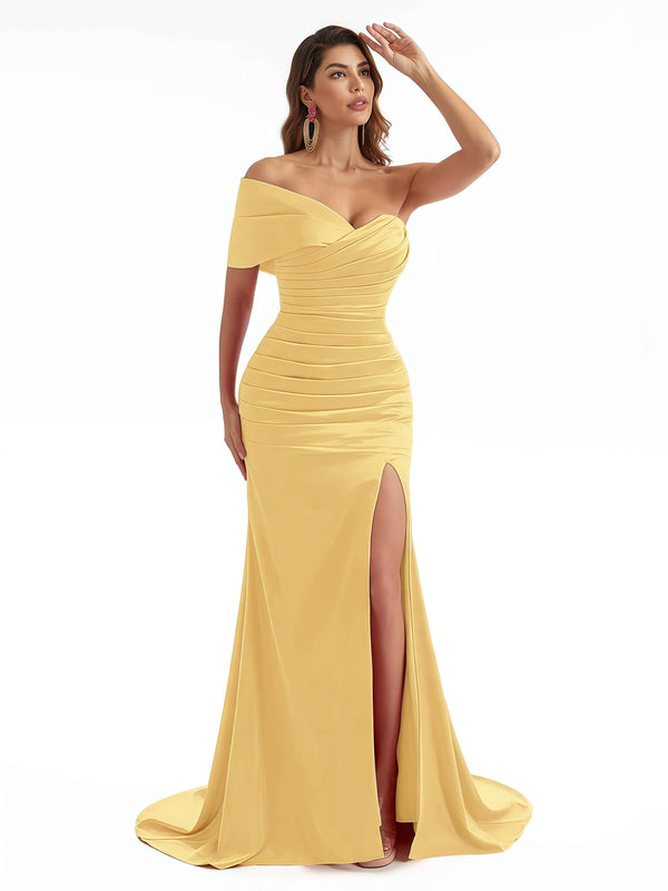 Sexy Side Split One Shoulder Maxi Mermaid Bridesmaid Dresses In Satin