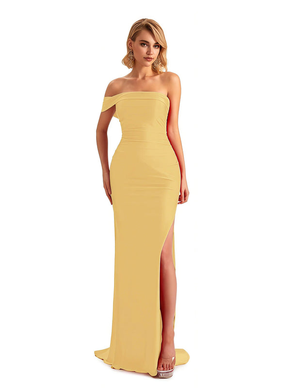 Sexy Side Slit One Shoulder Mermaid Soft Satin Unique Long Bridesmaid Dress For Wedding