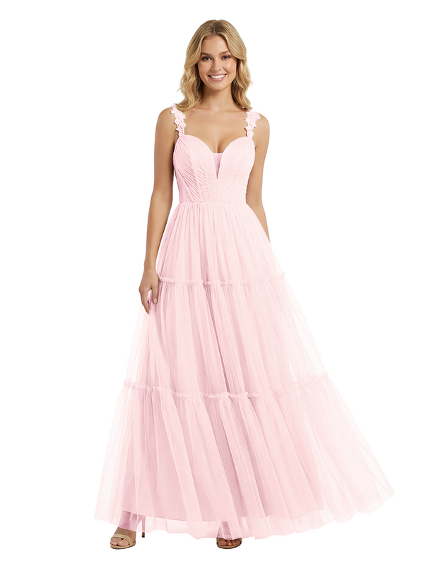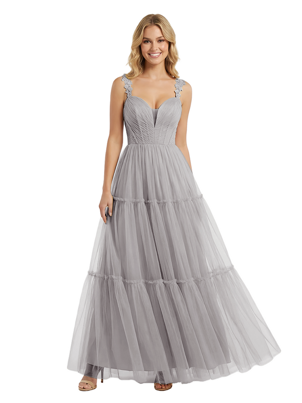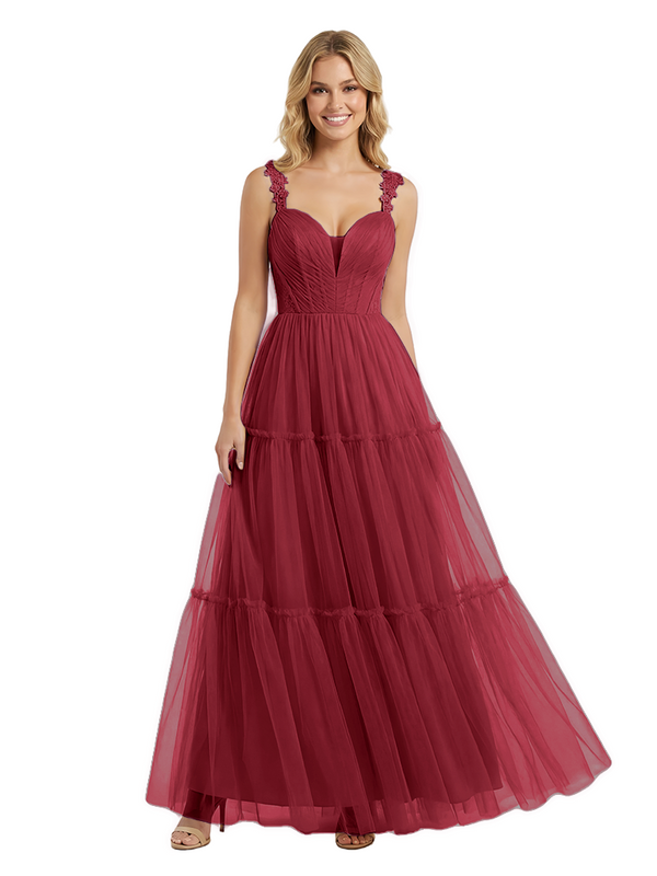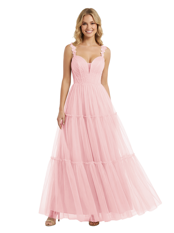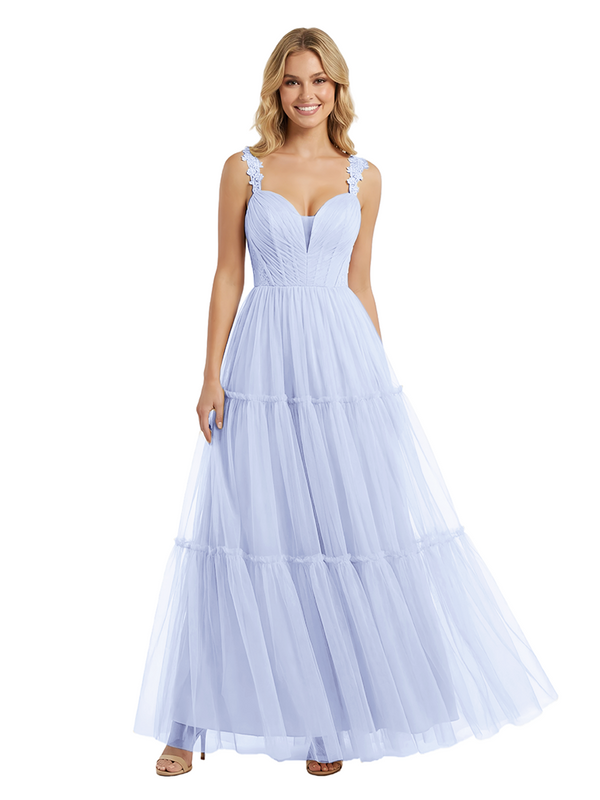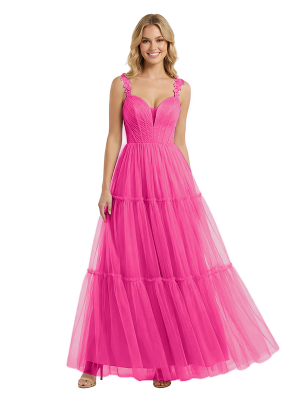 ChicSew Pretty V-Neck Tulle Prom Gown Elegant Lace Straps A-Line Maxi Evening Dress