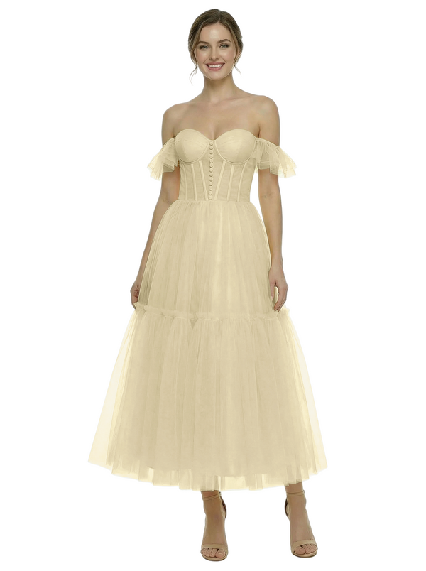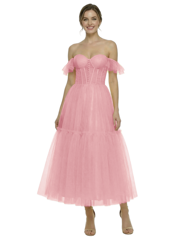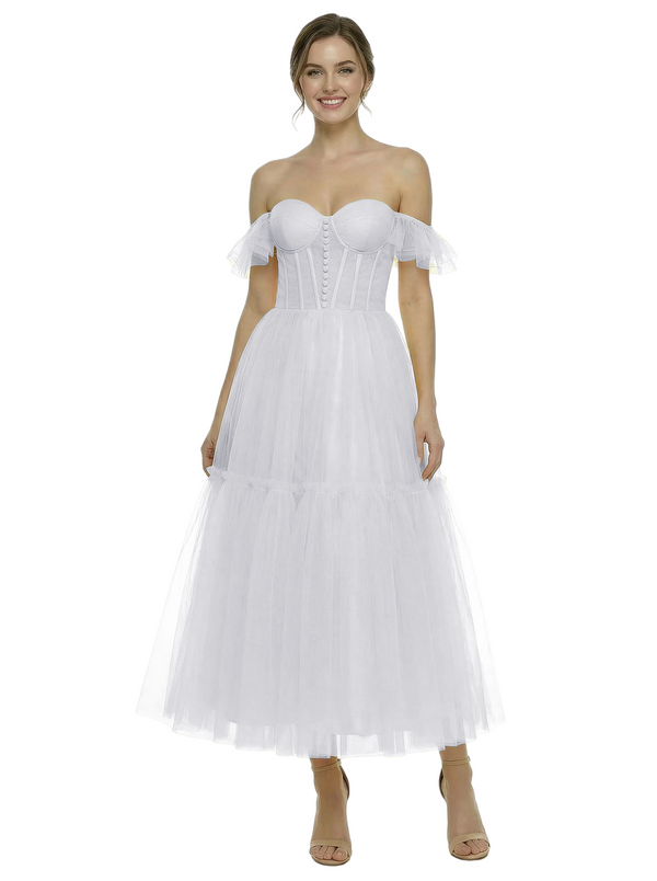 ChicSew Sweet Off The Shoulder Boning Lace A-Line Ankle-Length Formal Prom Dress