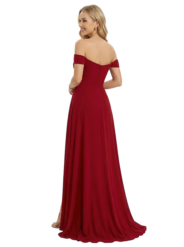 Casual Chiffon Off Shoulder Sleeveless A-Line Long Mother of The Bride Dresses Side SlitCasual Chiffon Off Shoulder Sleeveless A-Line Long Mother of The Bride Dresses Side Slit