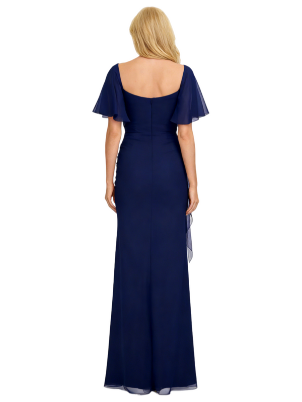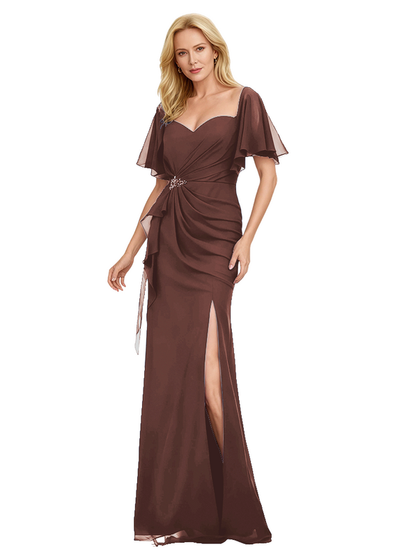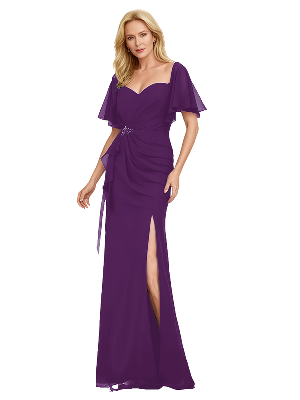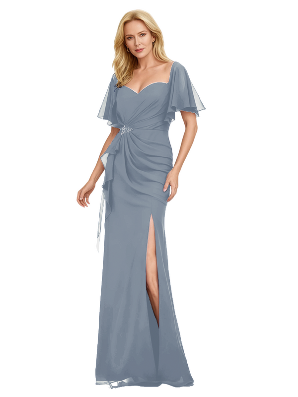 Elegant Flutter Sleeves Side Slit Chiffon Ruched Mermaid Mother of The Bride Dresses