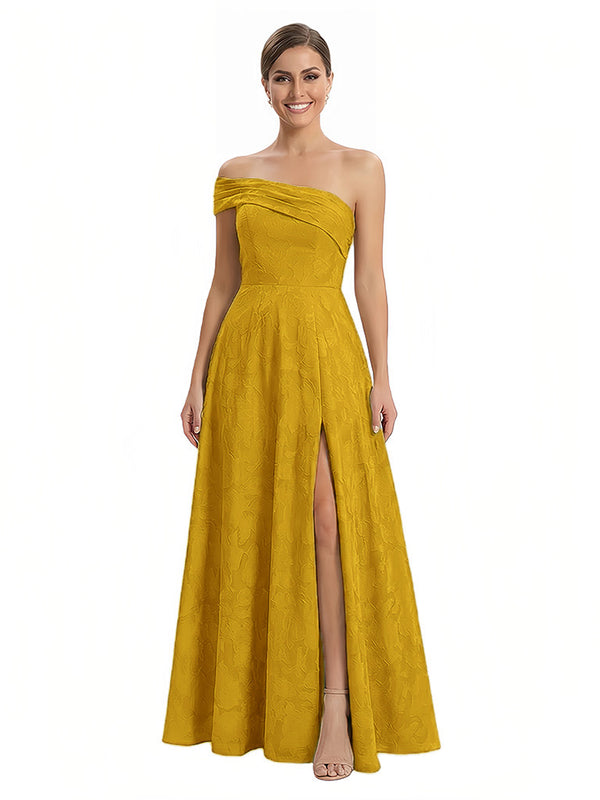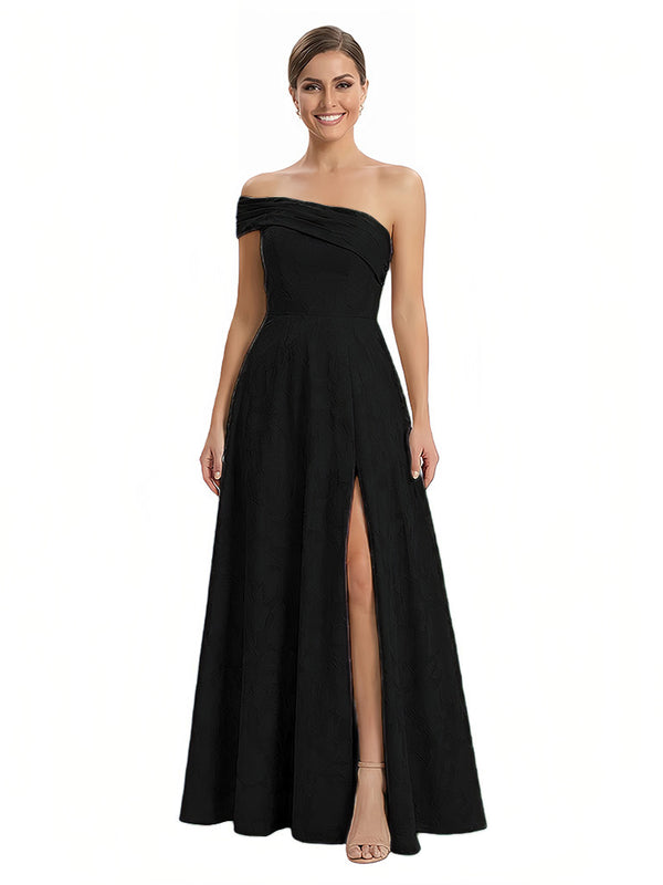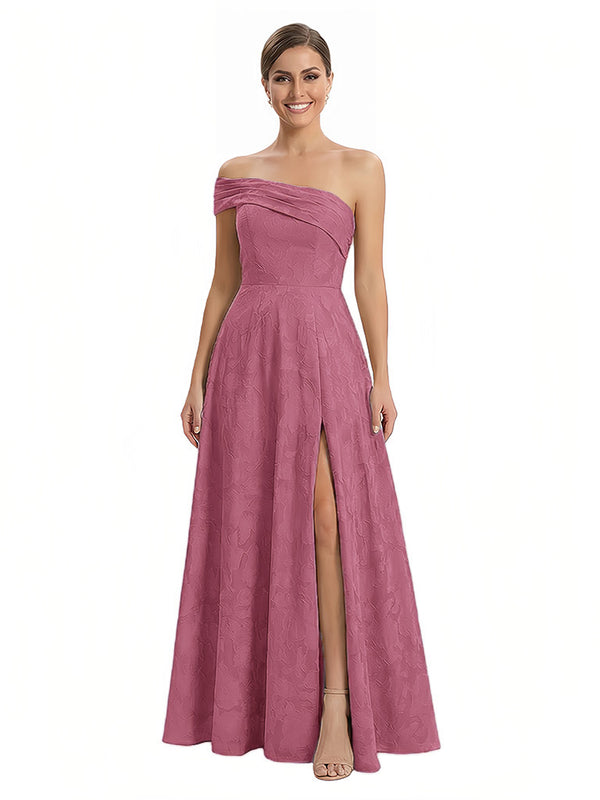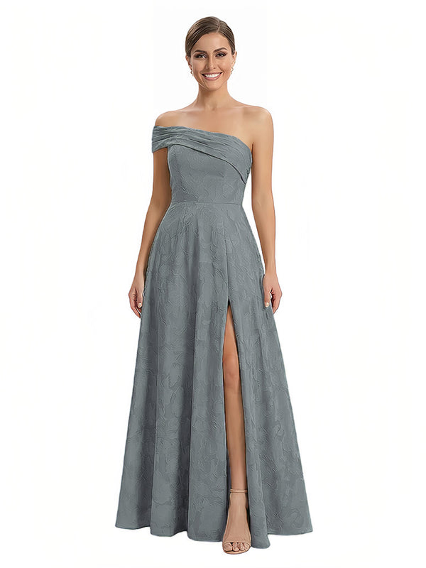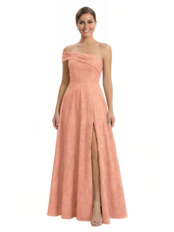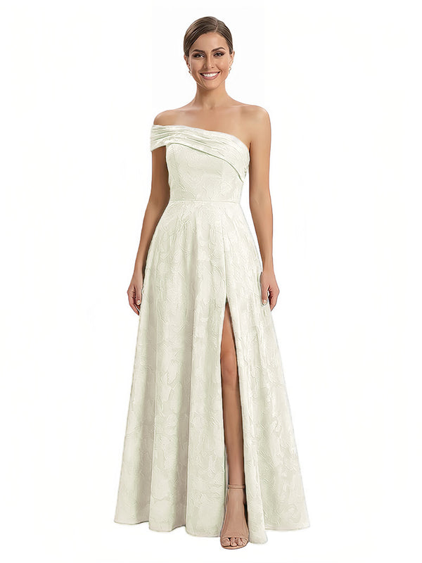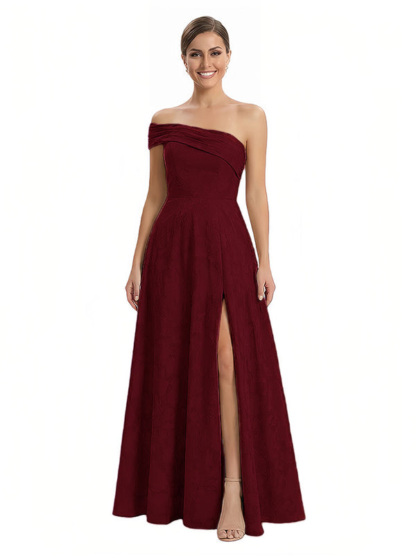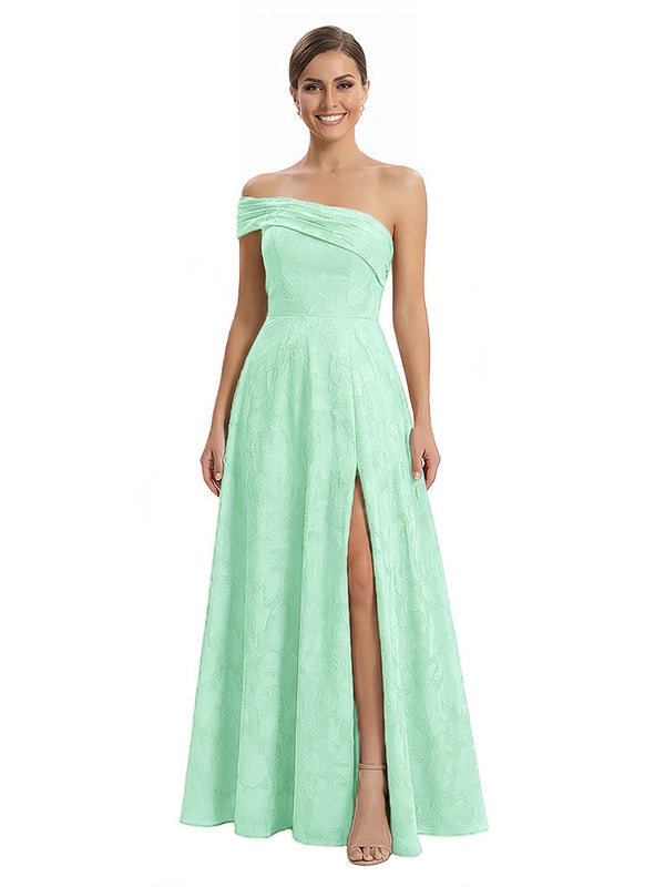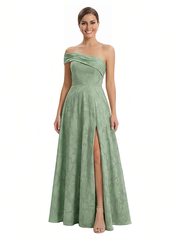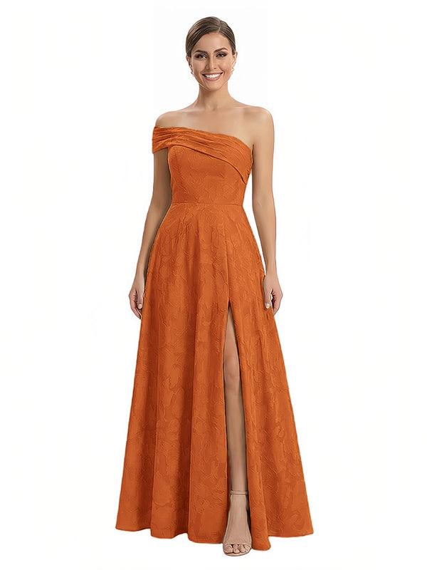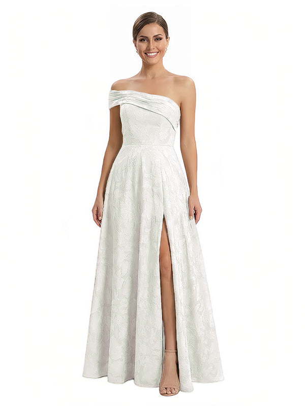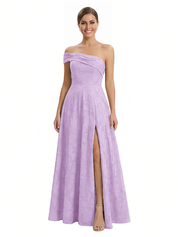 Elegant One Shoulder Floral Burnout Chiffon A-Line Formal Evening Dresses Side Slit