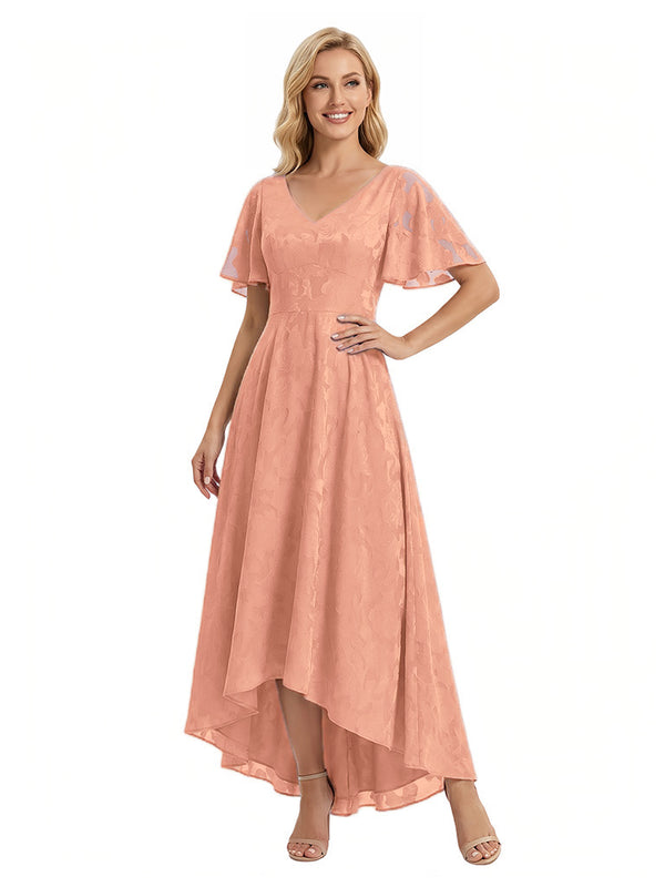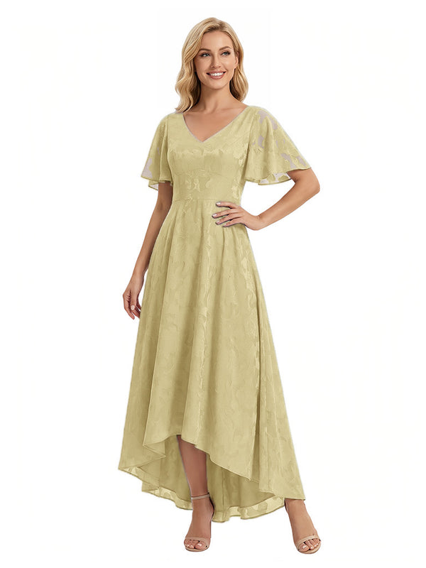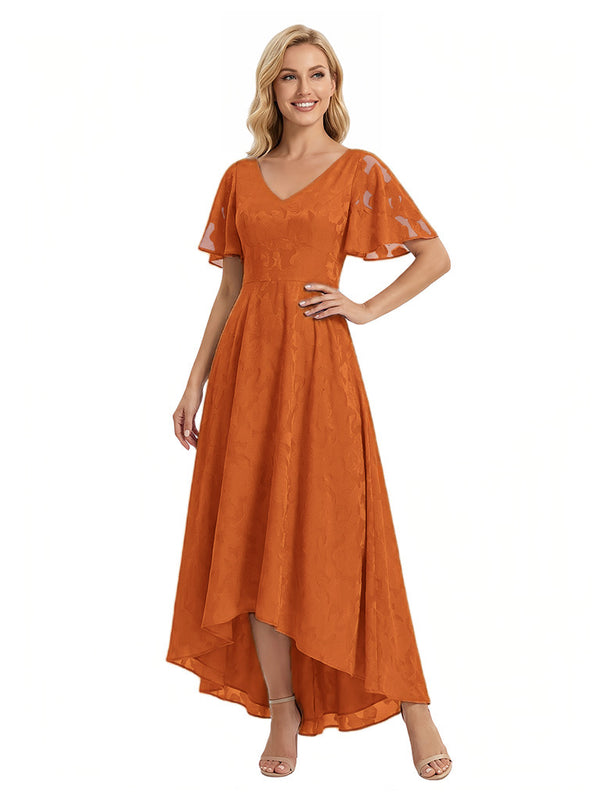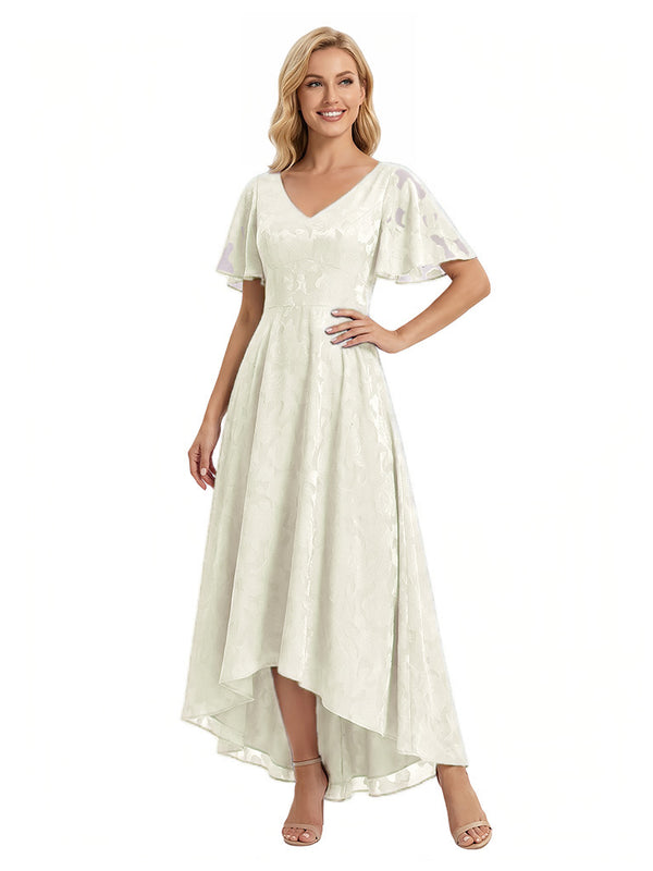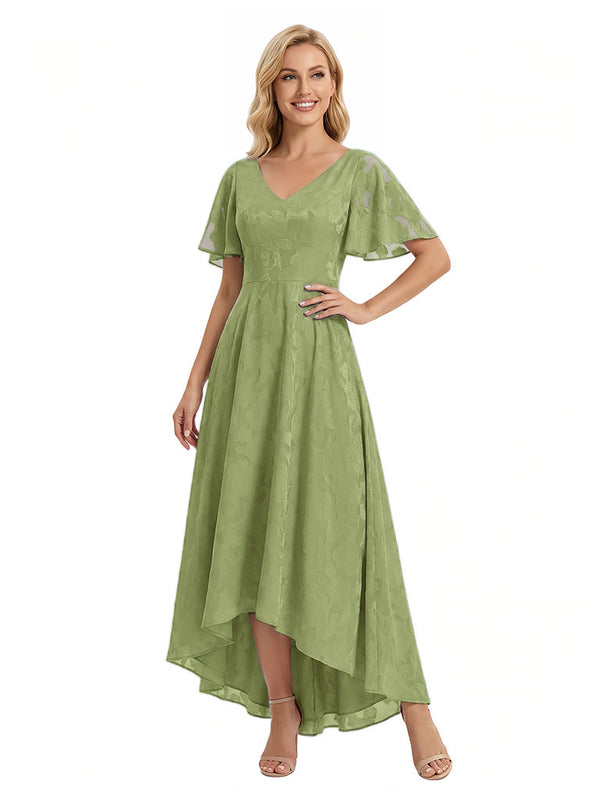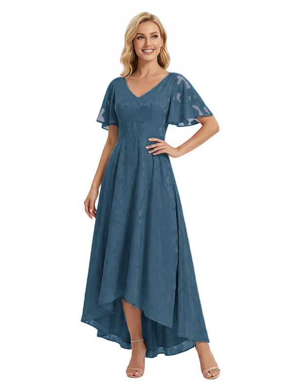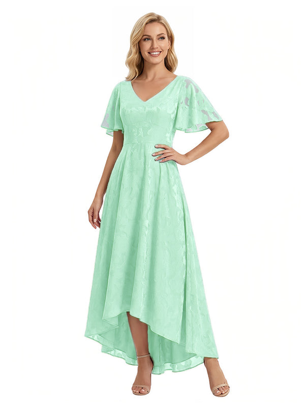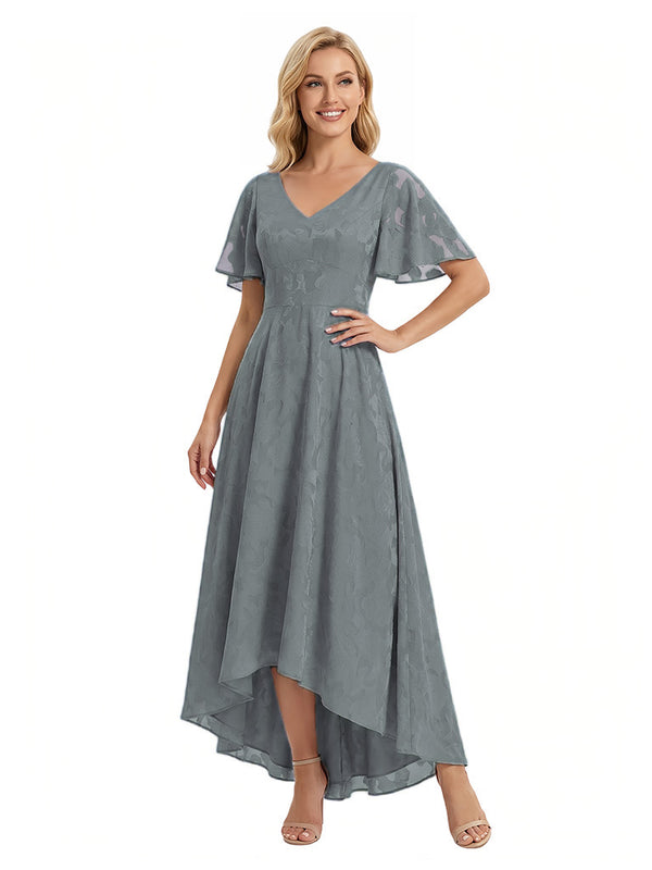 Elegant V-Neck Flutter Sleeves Floral Burnout Chiffon A-Line Formal Evening Dresses $139.99