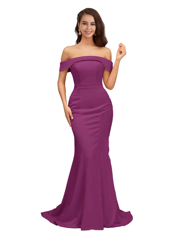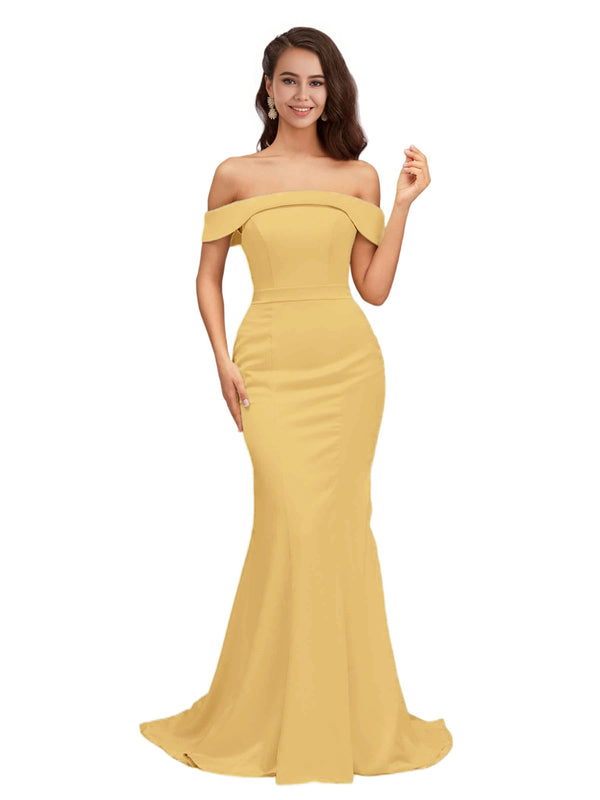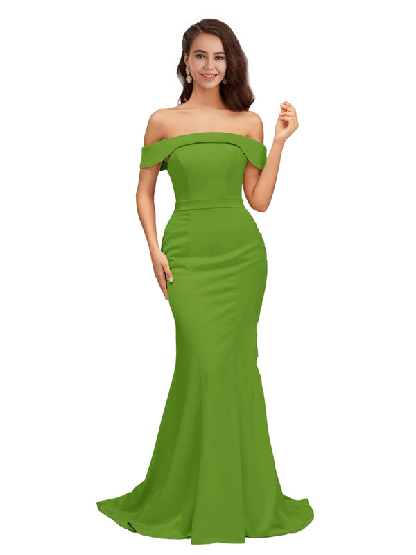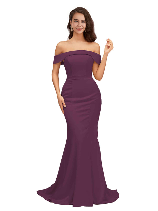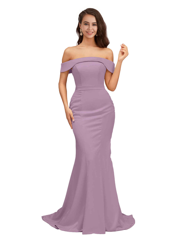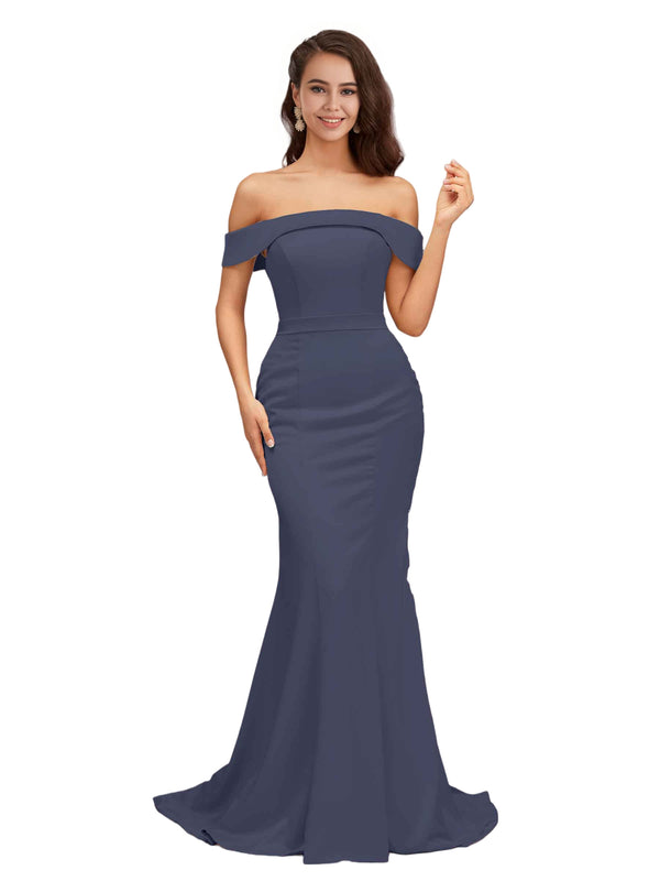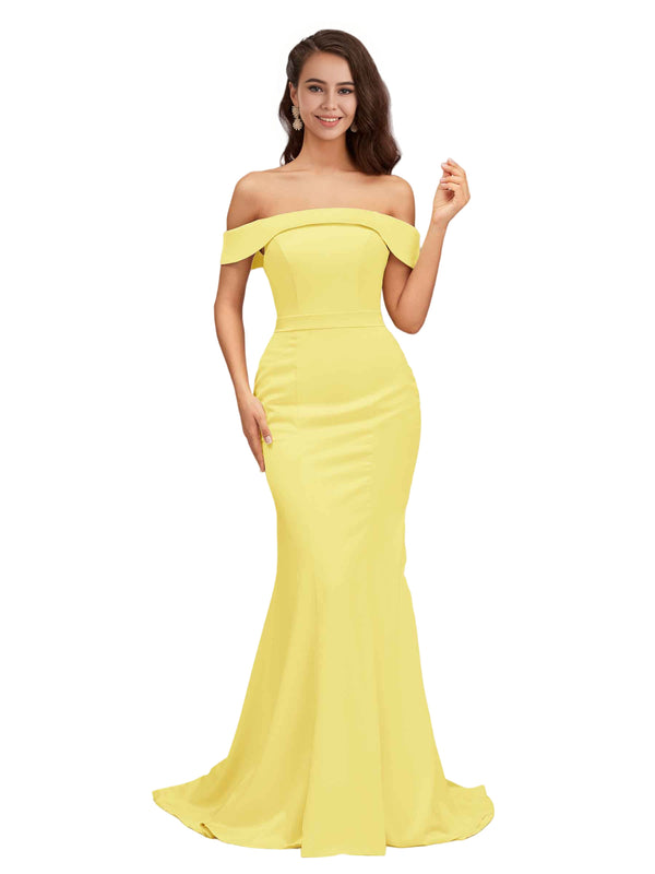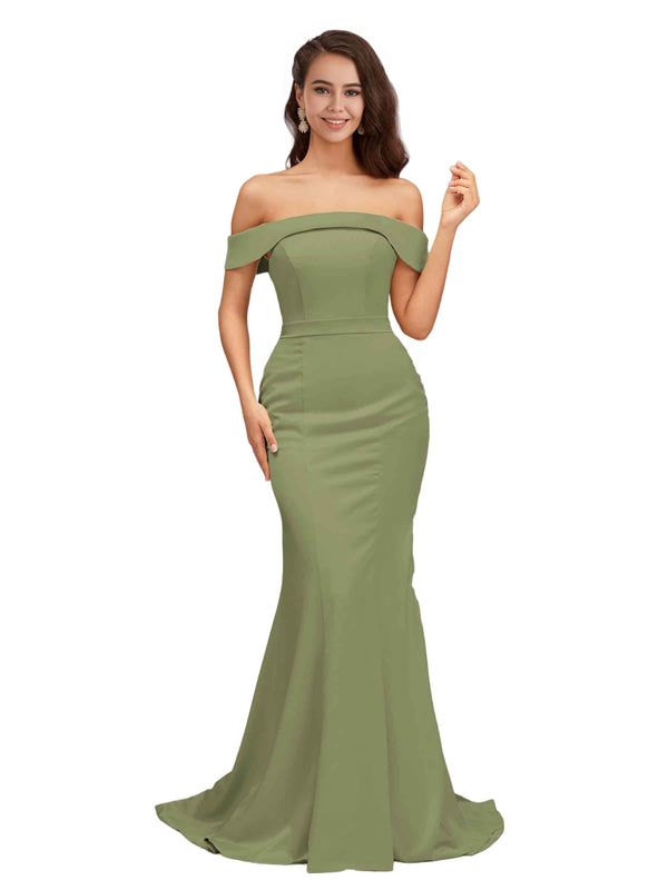 Elegant Off The Shoulder Soft Satin Simple Mermaid Long Bridesmaid Dresses Online