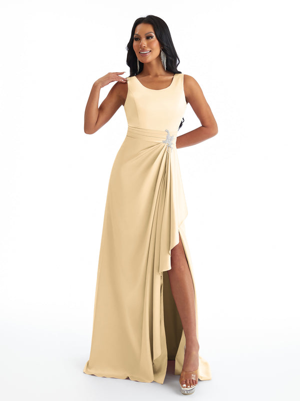 The ruching and draping on our dresses are fixed with stitching, as this is the only way to hold the pleats in place. Since the fabric is soft satin and stretchy, if your measurements are larger than the dress, it will be tight and the pleats will flatten out. If you take off the dress, the stitches may stretch, but you can adjust the pleats by gently pulling them to the sides to restore their shape.