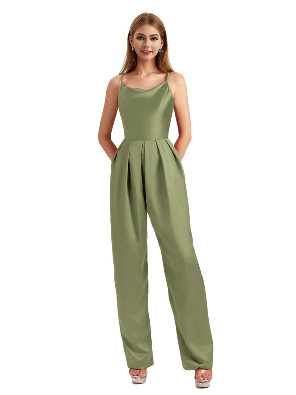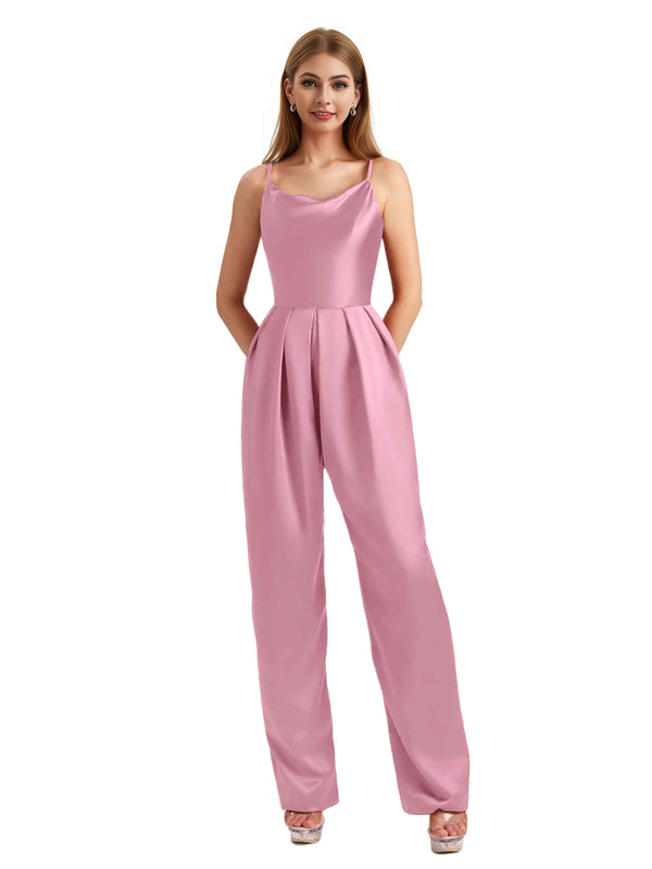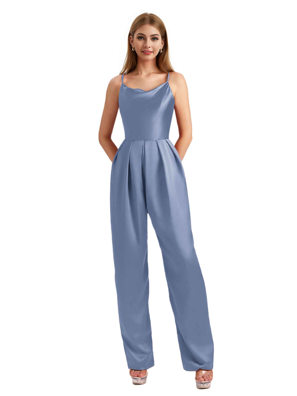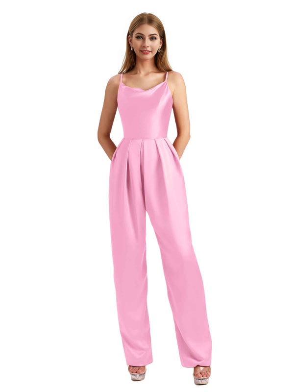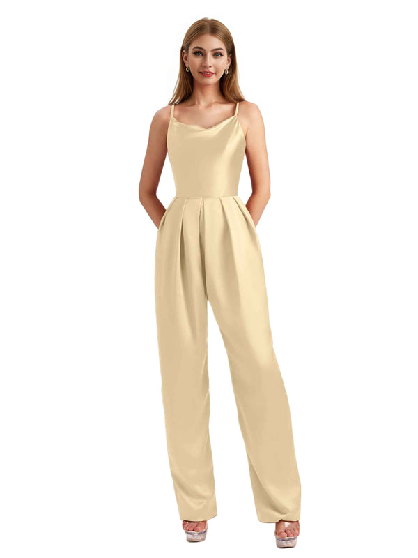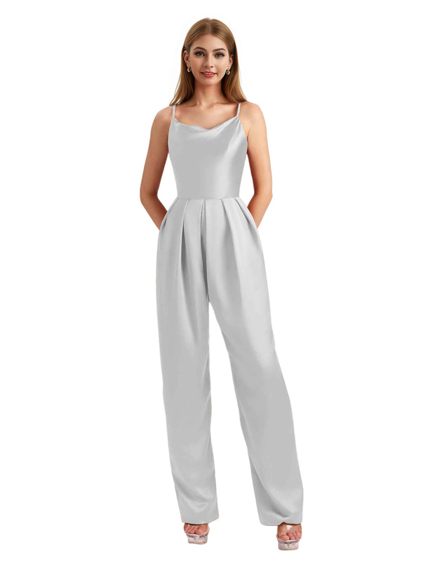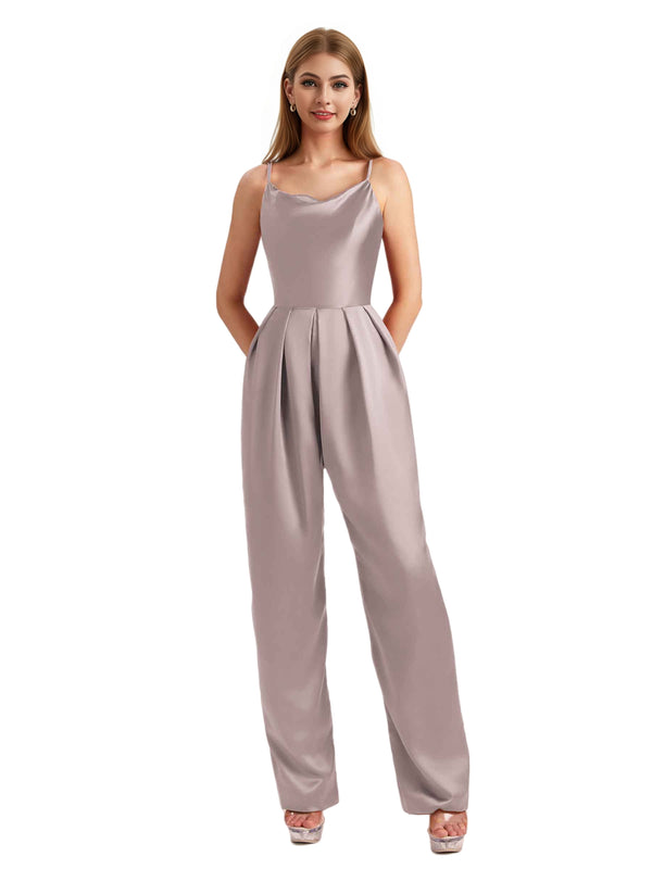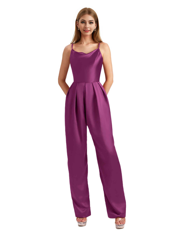 Elegant Scoop Silky Satin Long Women's Pantsuit For Bridesmaids $139.99