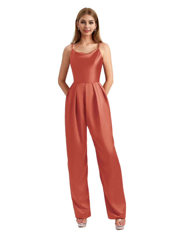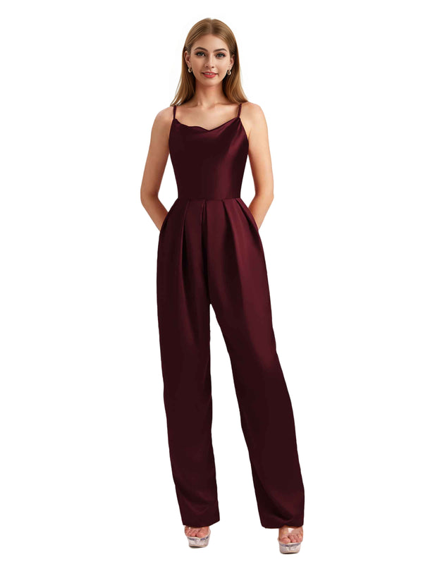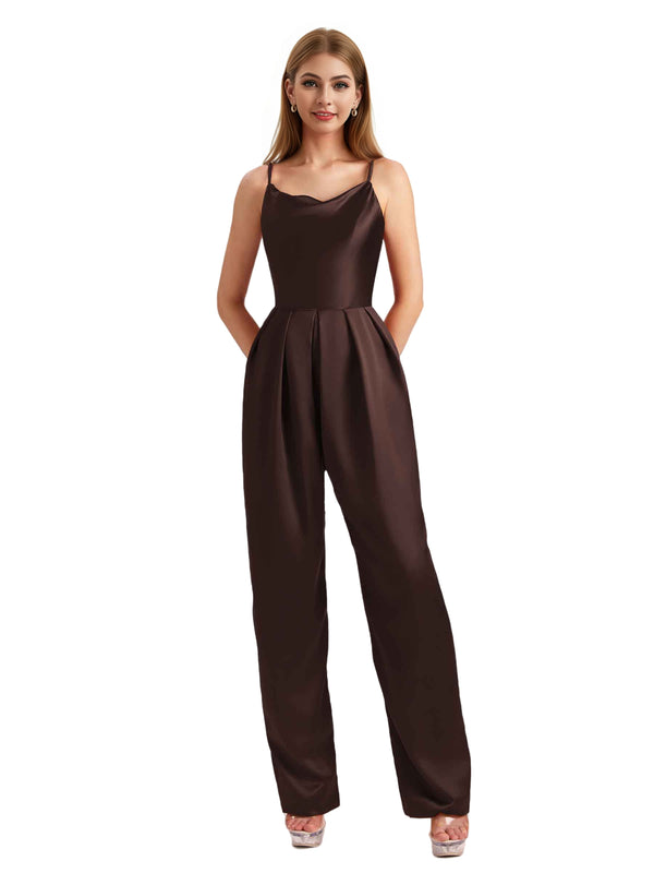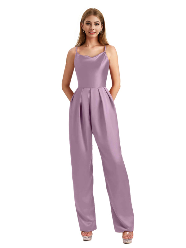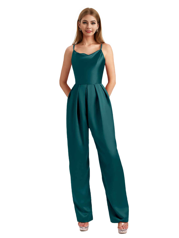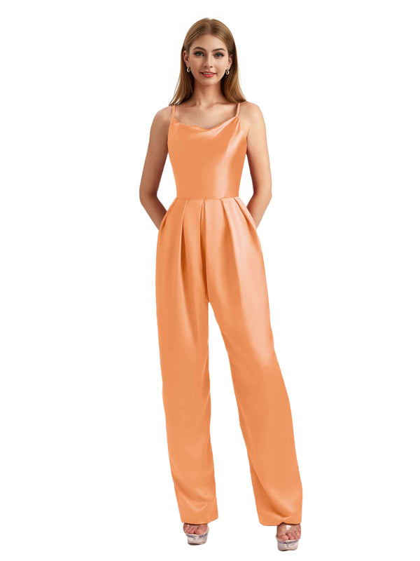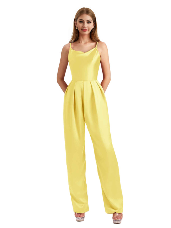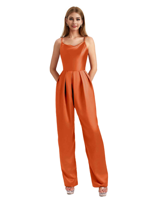 Elegant Scoop Silky Satin Long Women's Pantsuit For Bridesmaids $139.99