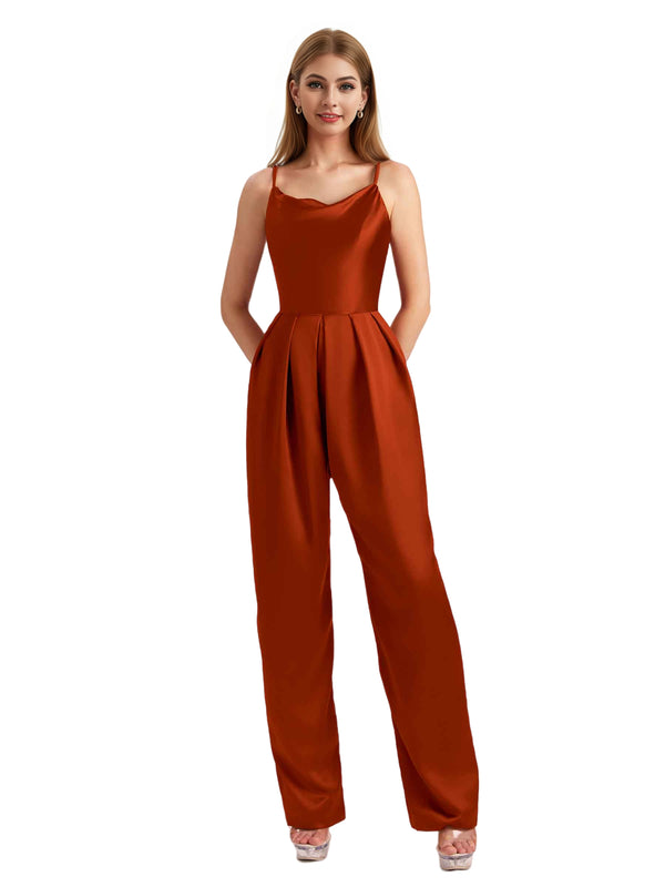 Elegant Scoop Silky Satin Long Women's Pantsuit For Bridesmaids