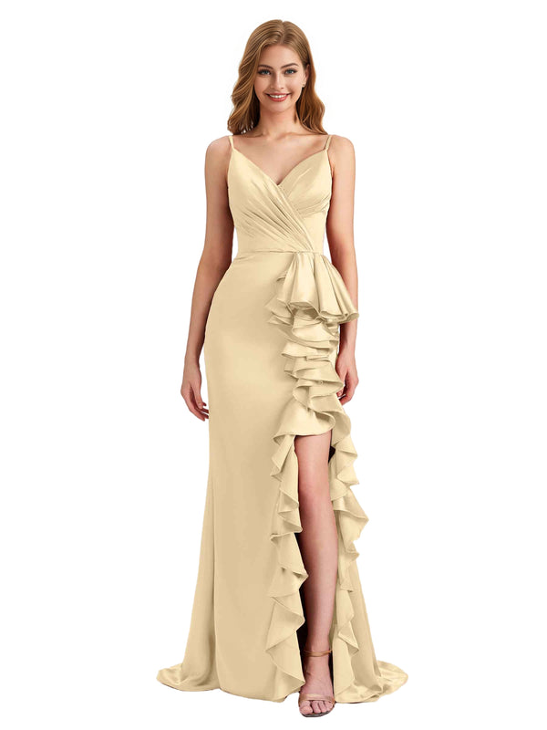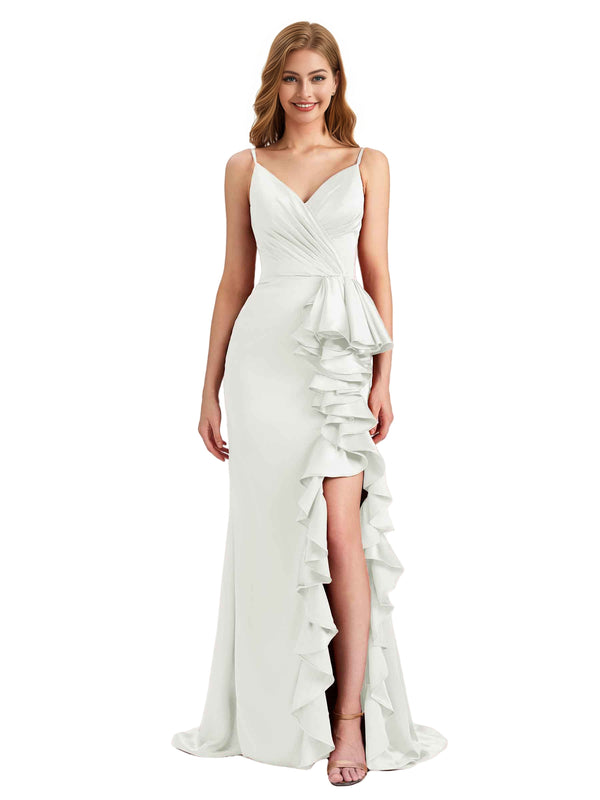 Since it's mermaid style, so only error is less than 1'' between your real measurements (bust, waist, hip: biggest part of hip, hollow to floor with shoes on) and standard size, then choose standard size otherwise it's better Custom size. Please note if your real measurements are smaller than dress, then pleats and ruches will become loose; if your real measurements are bigger than dress, then pleats and ruches will be spread to plain, so dress will not be the same as picture shown.