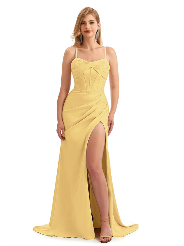 If your measurements are smaller than the dress, the pleats may loosen and lose their shape. In this case, we recommend taking the dress to a local seamstress for adjustments.