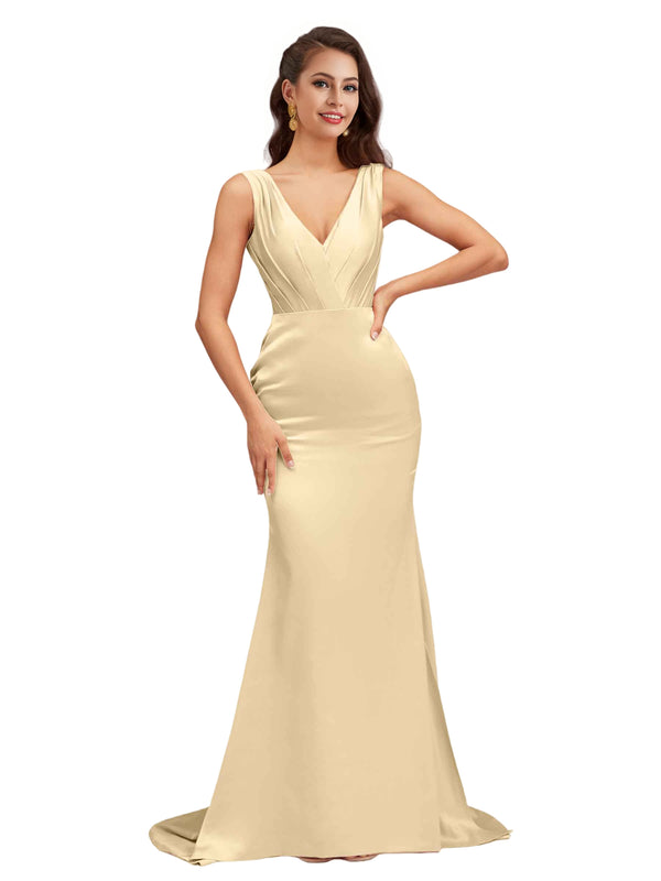 Since it's mermaid style, so only error is less than 1'' between your real measurements (bust, waist, hip: biggest part of hip, hollow to floor with shoes on) and standard size, then choose standard size otherwise it's better Custom size. Please note if your real measurements are smaller than dress, then pleats and ruches will become loose; if your real measurements are bigger than dress, then pleats and ruches will be spread to plain, so dress will not be the same as picture shown.