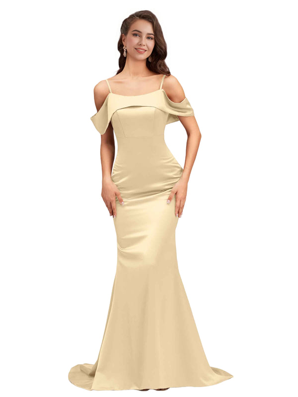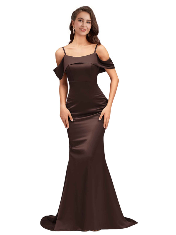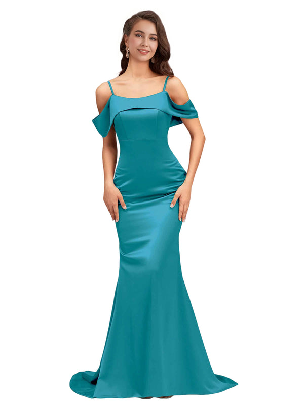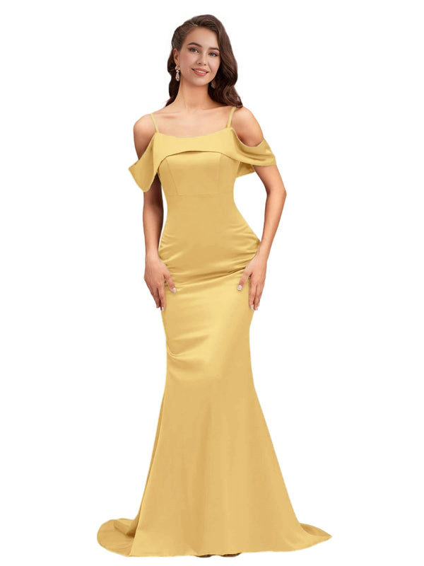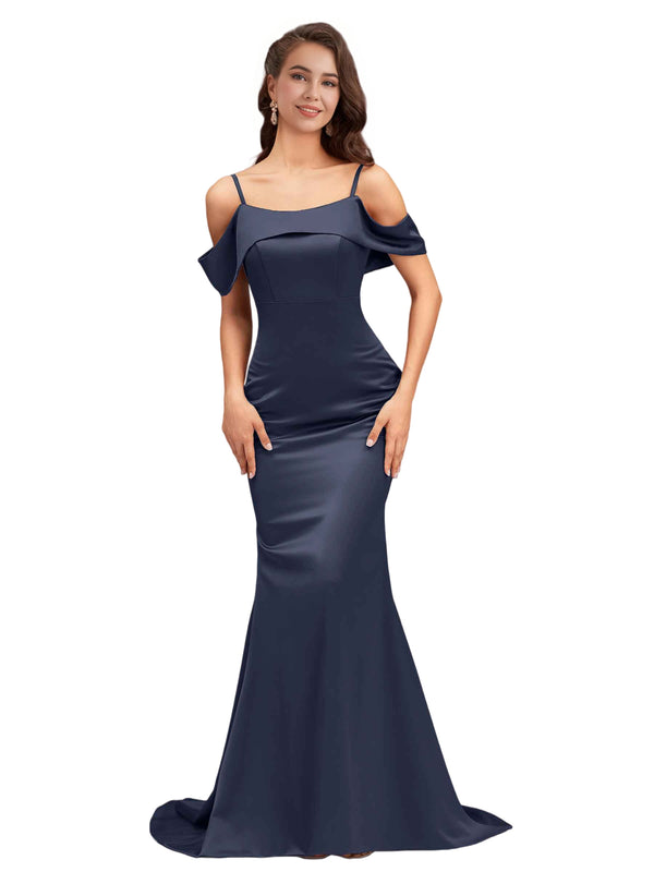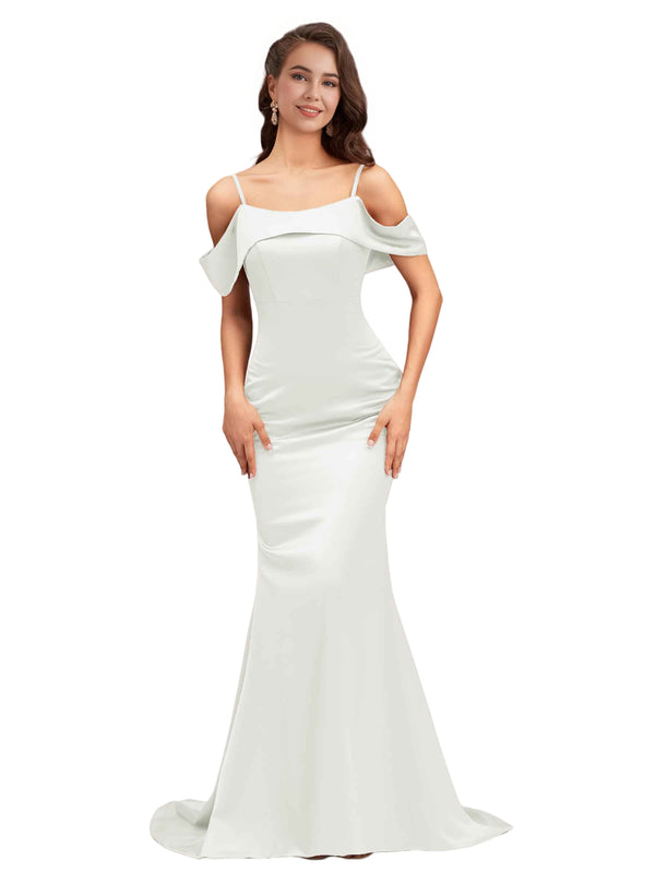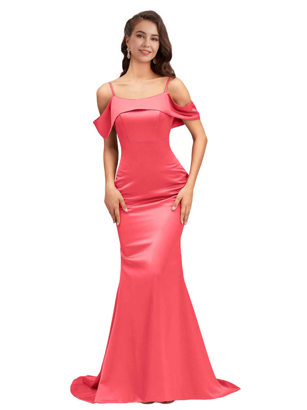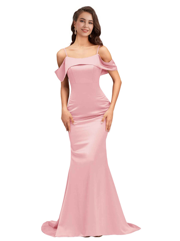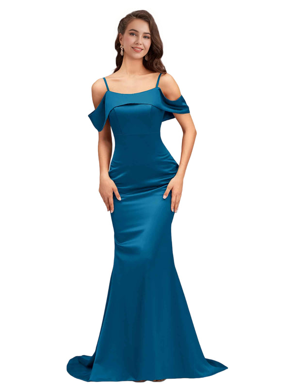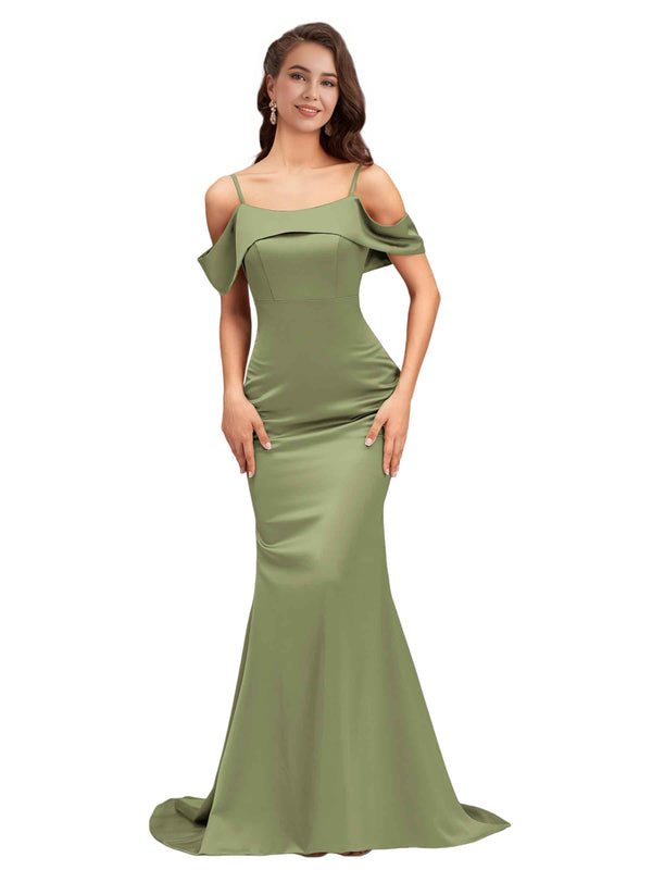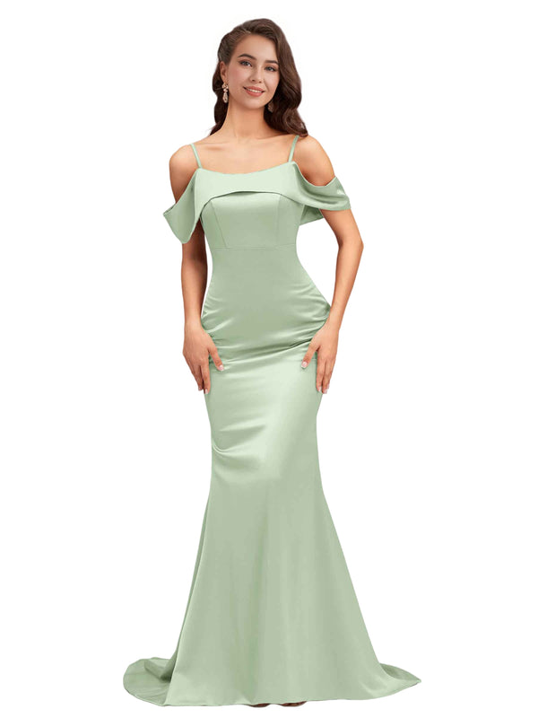 Sexy Cold Shoulder Soft Satin Mermaid Long Bridesmaid Dresses Online