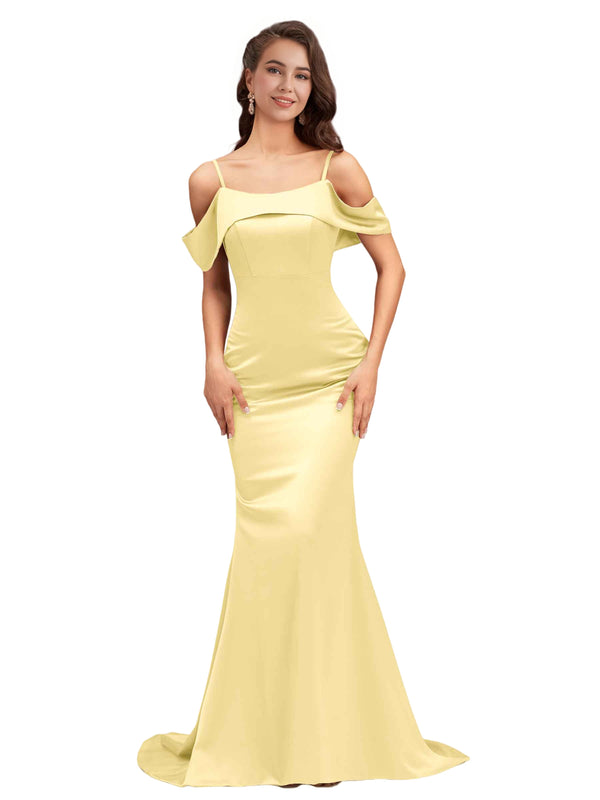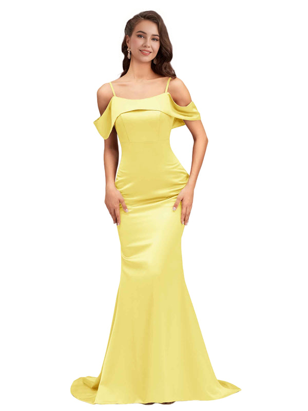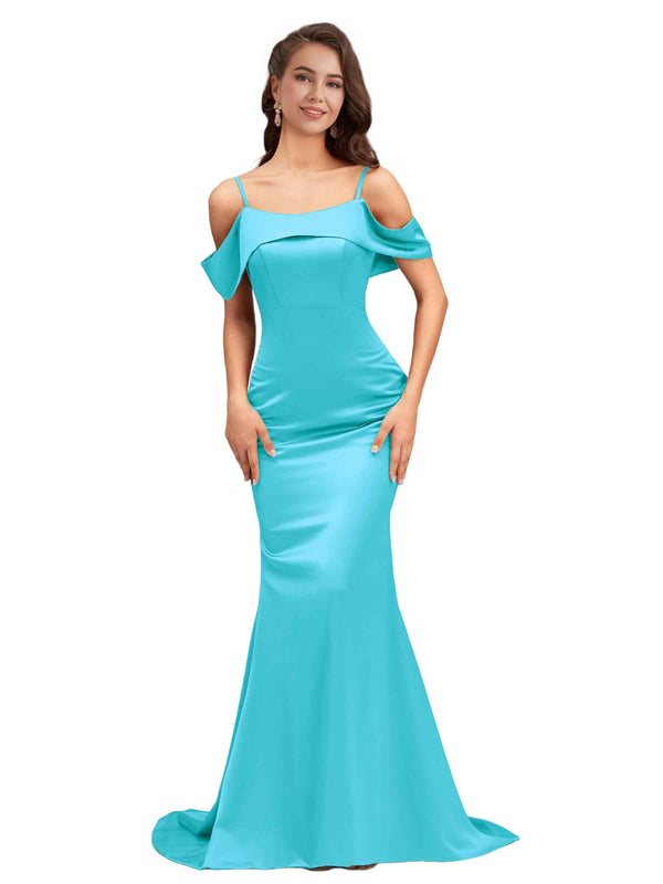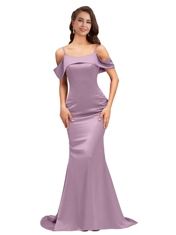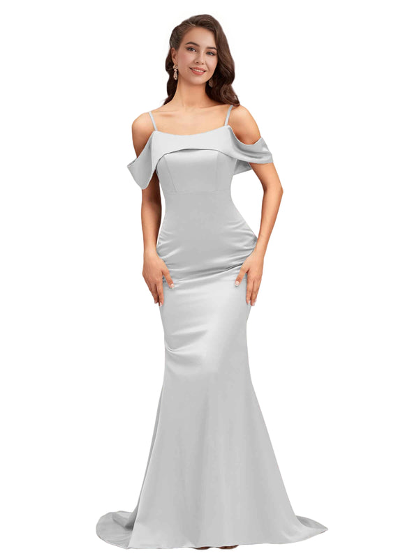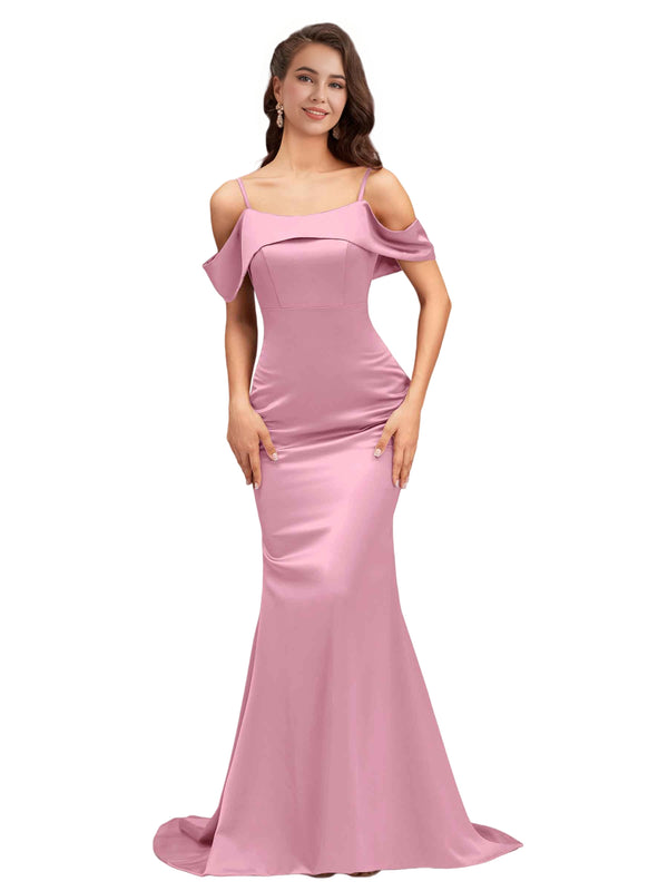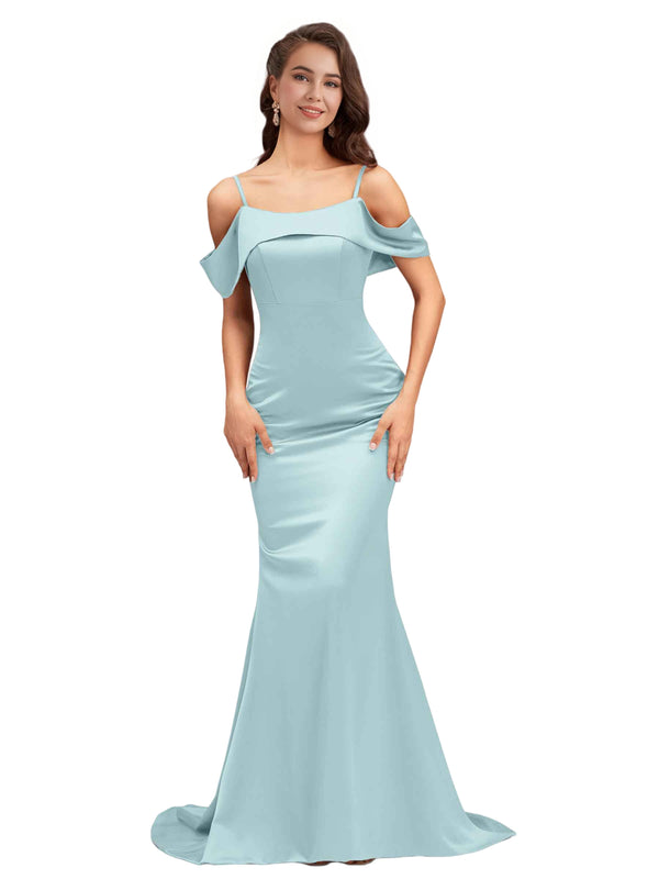 Sexy Cold Shoulder Soft Satin Mermaid Long Bridesmaid Dresses Online $139.99