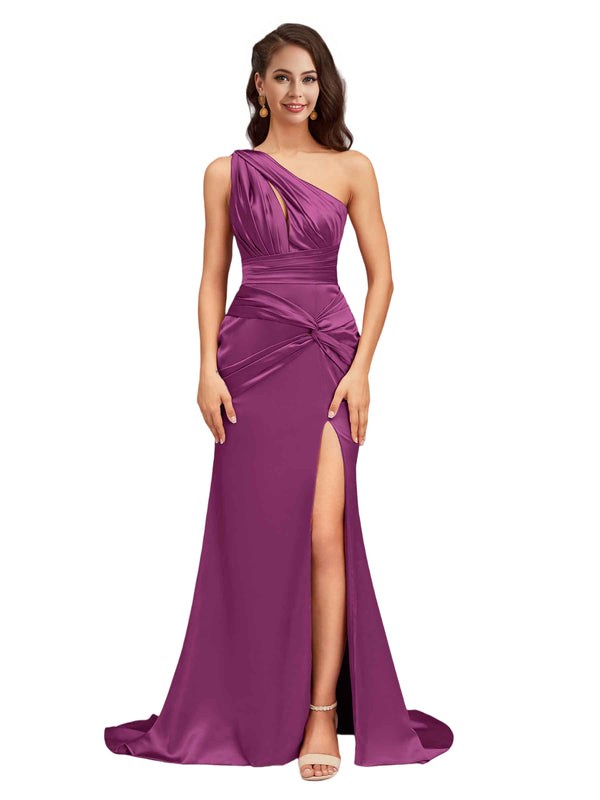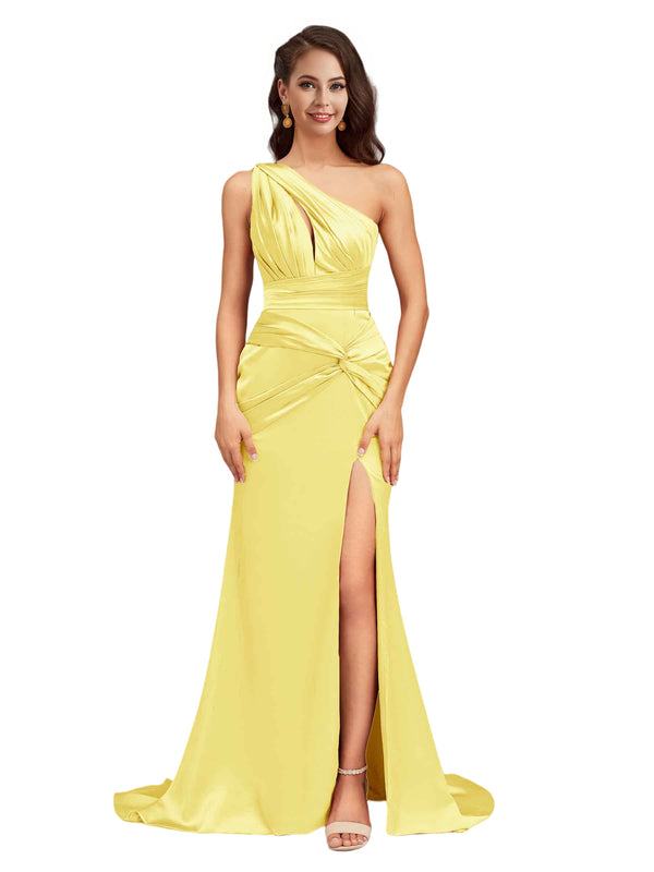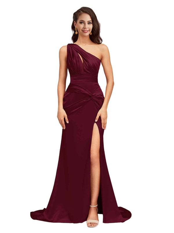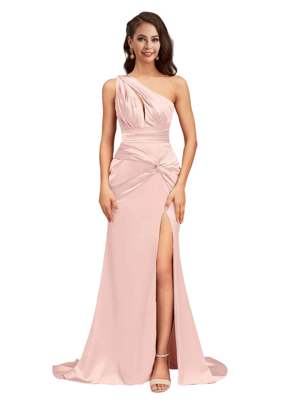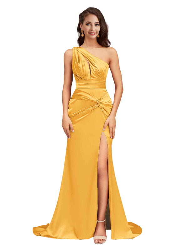 Sexy Mermaid One Shoulder Side Slit Beauty Long Soft Satin Bridesmaid Dresses Online