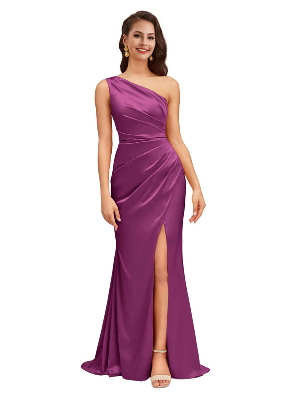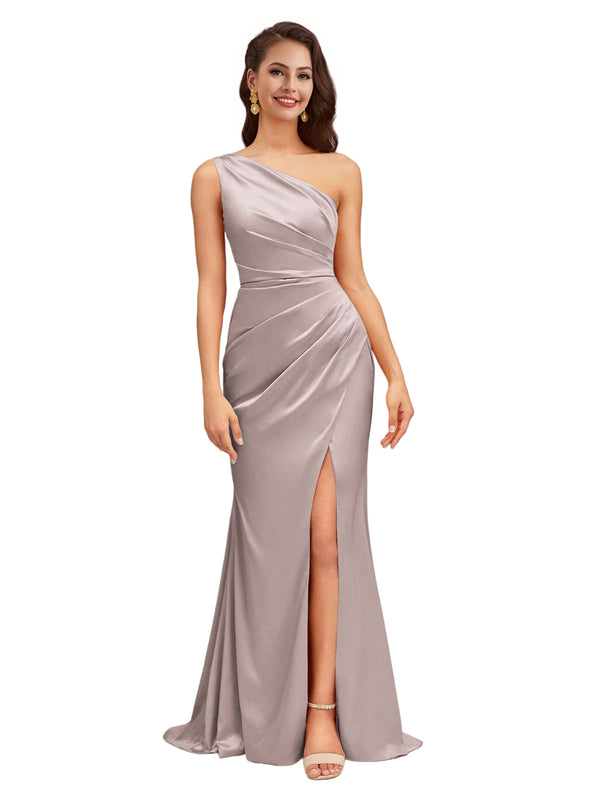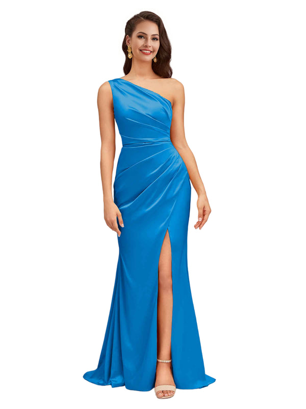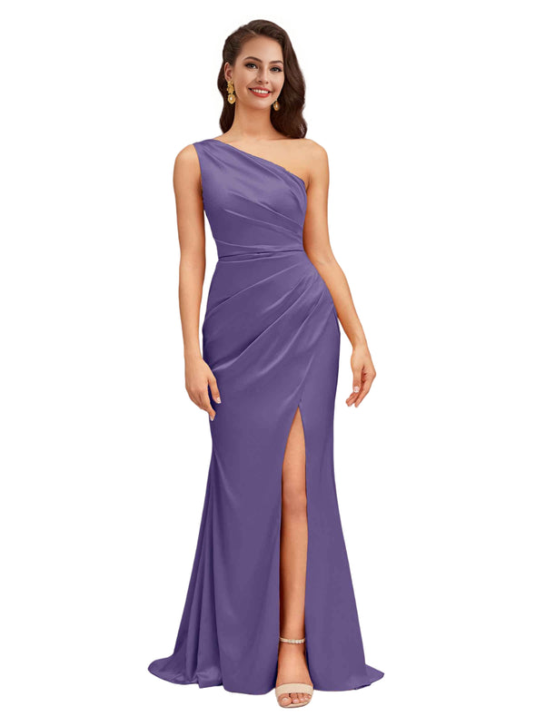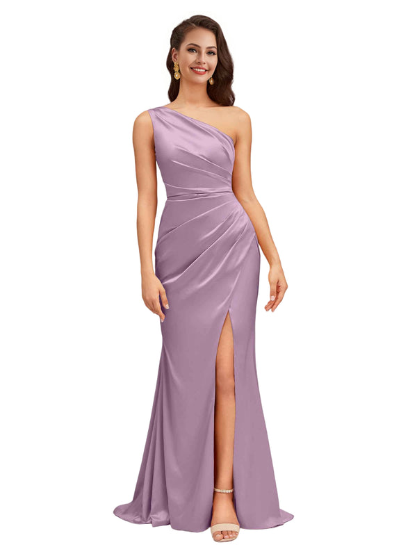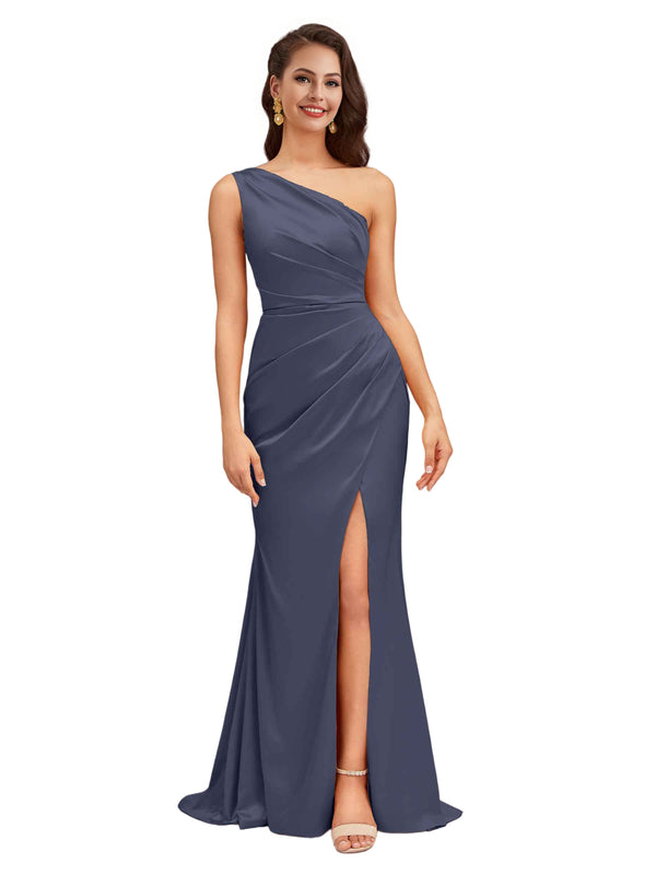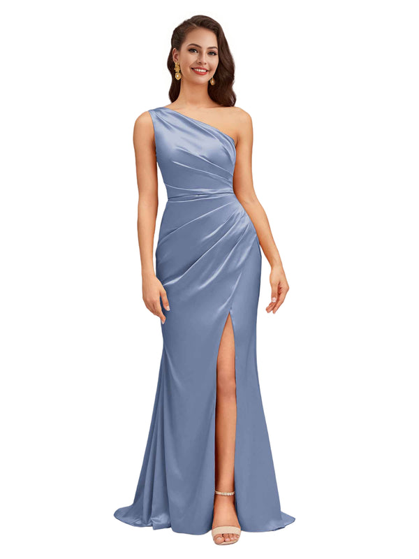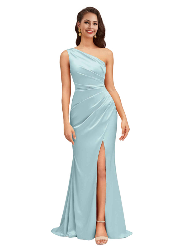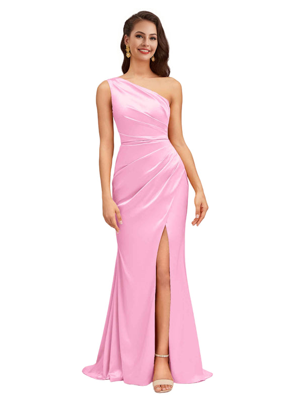 Sexy Mermaid One Shoulder Side Slit Beauty Long Soft Satin Bridesmaid Dresses Online